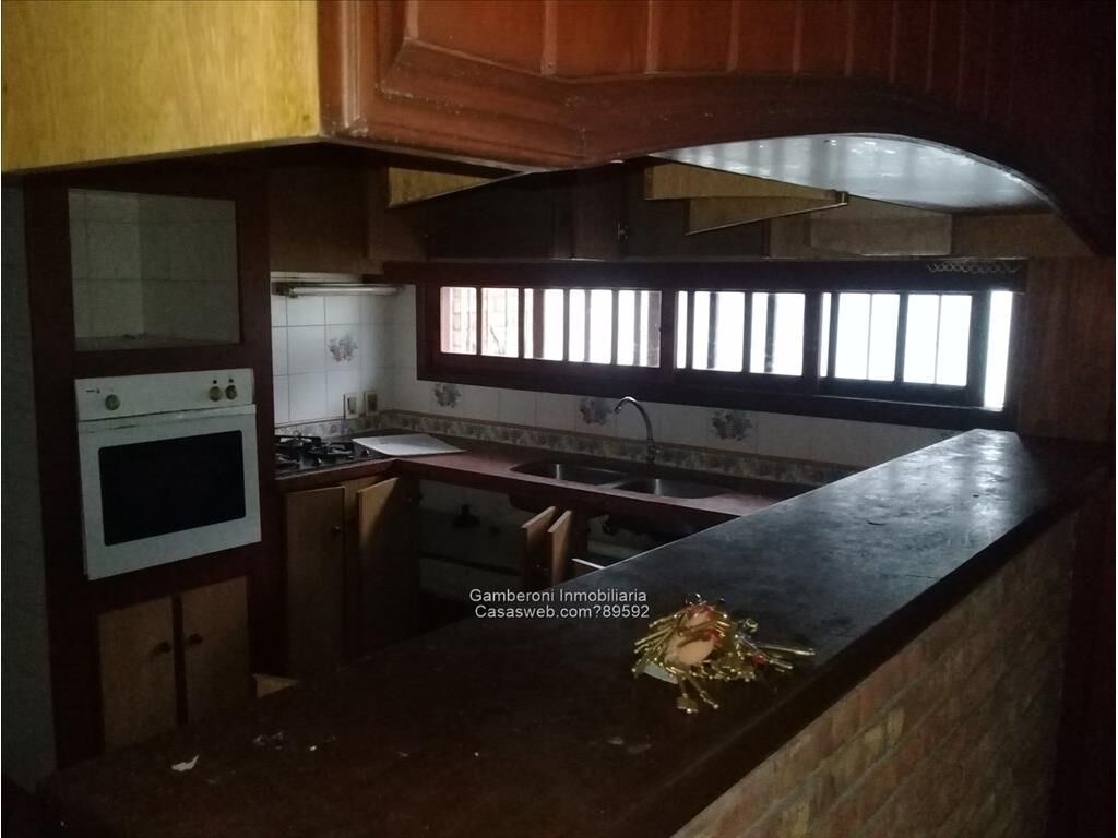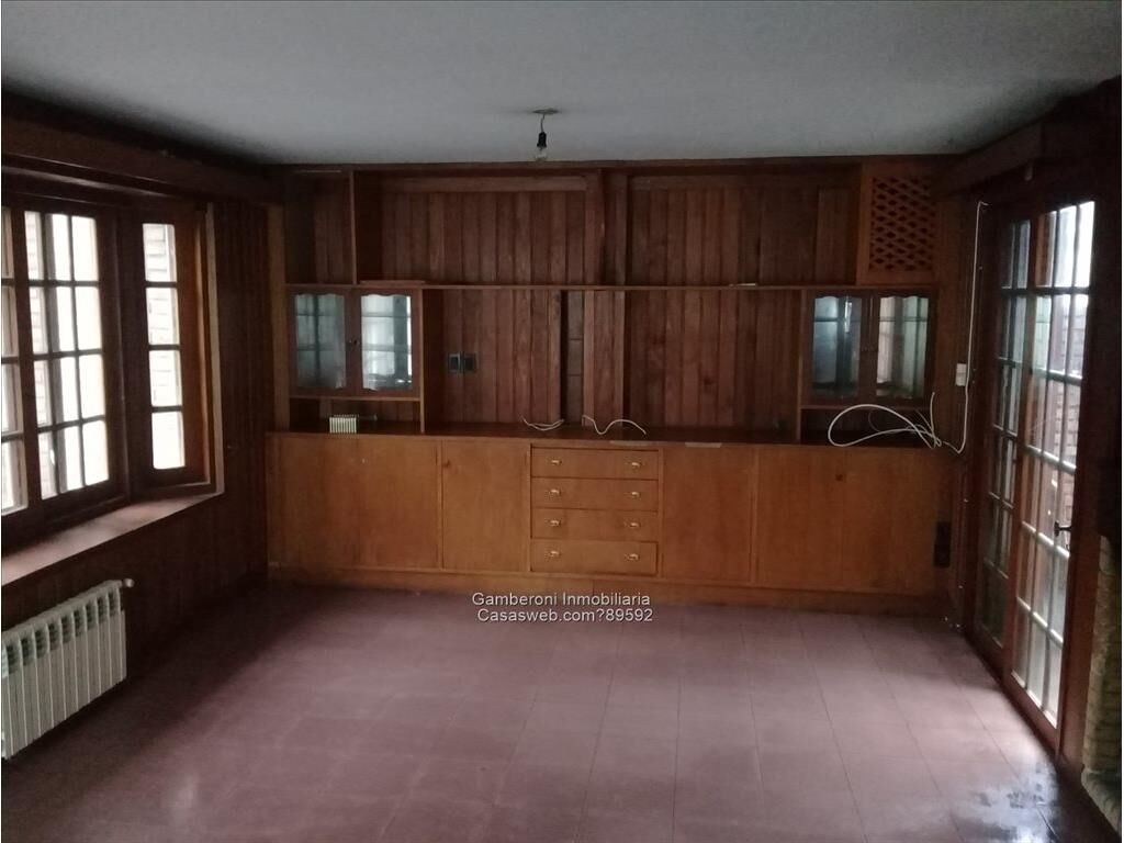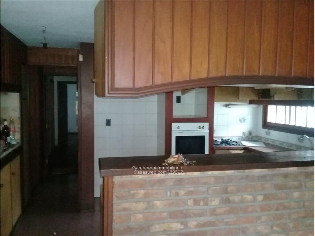 Excelente chalet de tres dormitorios con pisos de parquet y placares, aberturas en madera con cortinas de enrollar de madera, cocina comedor estilo americana con barra pasaplato, revestimiento en cerámica, placares bajo mesada, pisos de cerámica, living , dos baños con revestimiento en cerámica, entrada para coche, calefacción central, fondo con parillero, galpón.