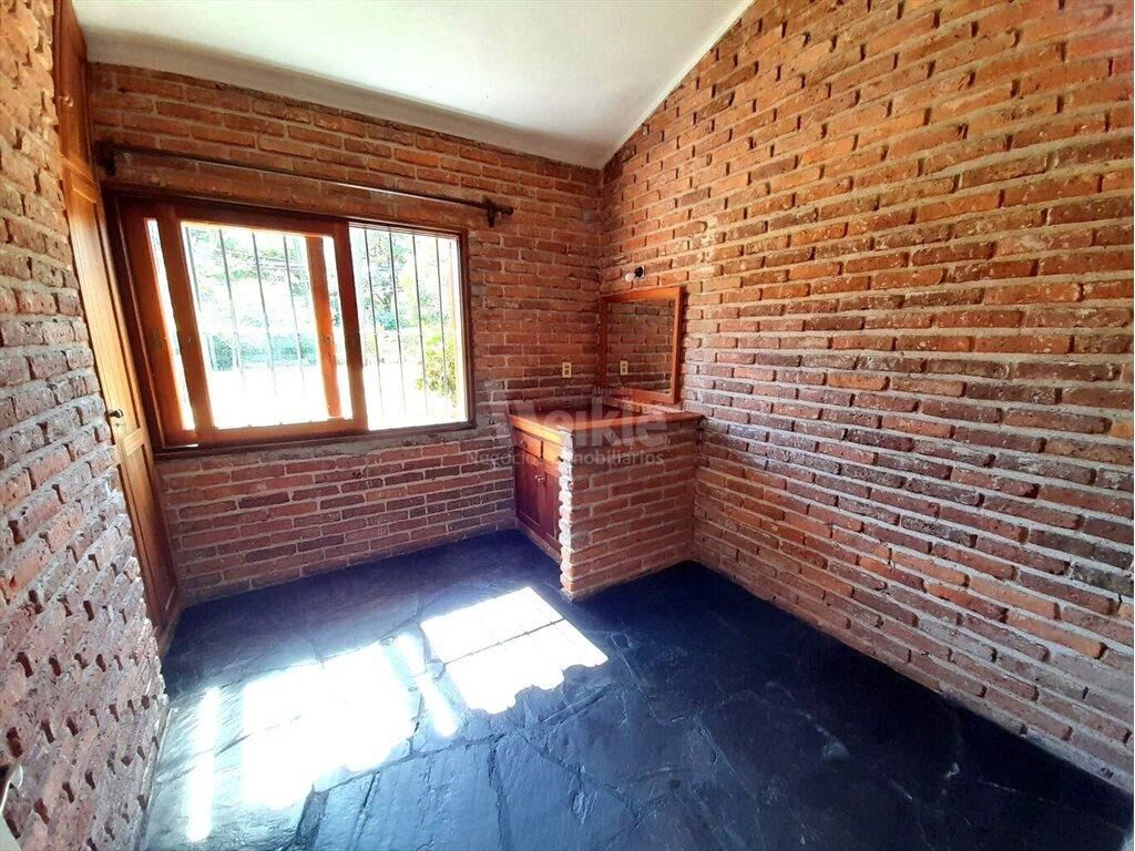 Chalet de tejas con aberturas de madera, doble pared de ladrillo, postigones. Pisos con piedra laja lustrada. Living comedor con estufa leña. 2 dormitorios con placars (ppal en suite). 2 baños completos. Escritorio. Cocina con placards y salida al fondo. Cochera con parrillero. Depósito. Agua de ´pozo