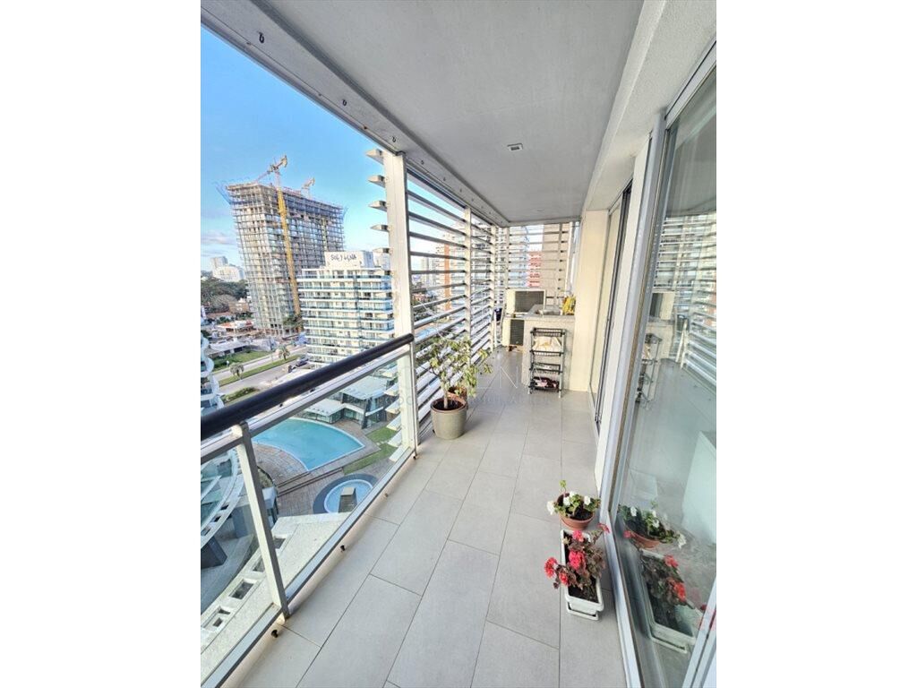 La unidad cuenta con una cocina equipada que se abre a una acogedora terraza, perfecta para disfrutar de momentos al aire libre. El luminoso living-comedor invita a relajarse y compartir con familiares y amigos. Además, el edificio ofrece servicios de mucamas y playa, asegurando que tu experiencia sea completamente placentera.