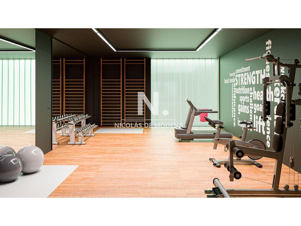 - Gimnasio con máquinas de última generación conectado a espacio fitness exterior.