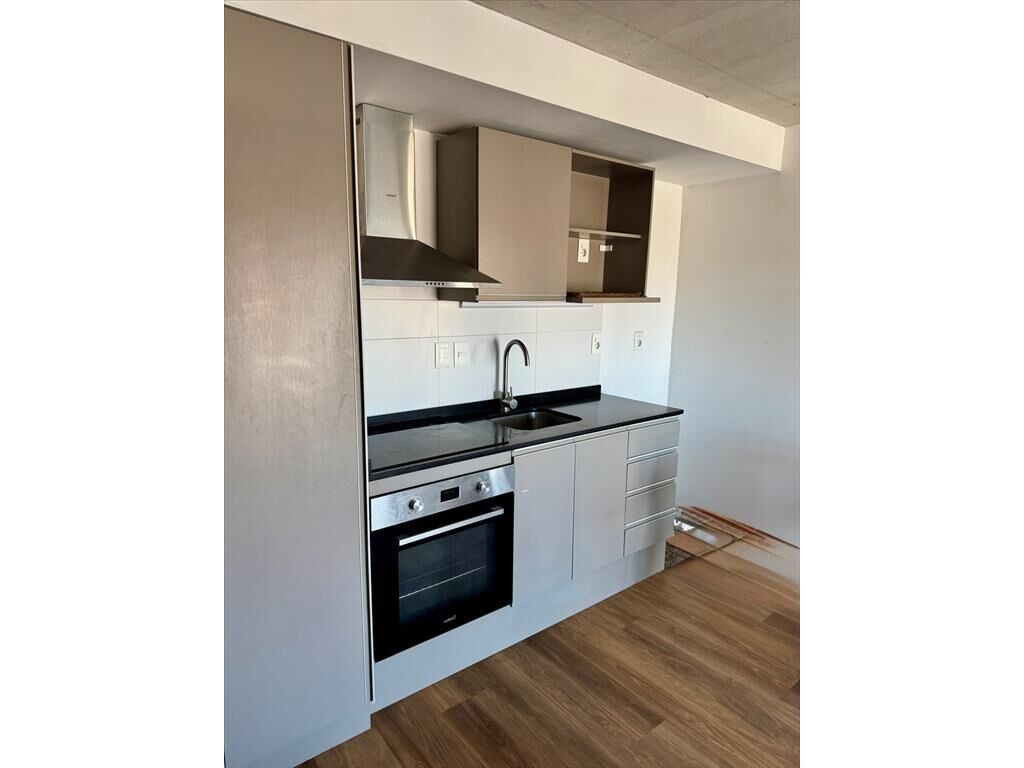 Living comedor con cocina integrada con anafe horno y campana con mesada silestone, placeres sobre y bajo mesada.