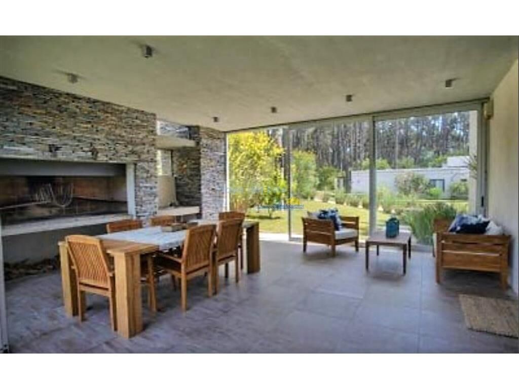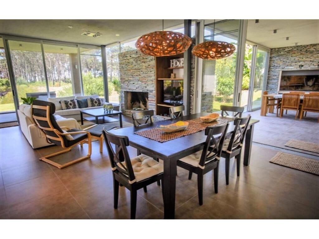 En un lote de 1.200 m2 y desarrollada en 400 m2 distribuidos en dos plantas, esta espléndida propiedad cuenta con un espacioso living comedor con hogar a leña, y ventanales de piso a techo que permiten disfrutar el jardín desde el interior de la casa. Barbacoa cerrada, bien equipada, con comunicación al interior de la casa y salida al jardín.