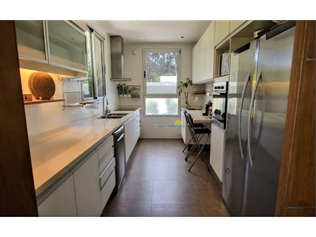 Amplia cocina definida, completamente equipada con electrodomésticos de última generación, desayunador y ventanales que permiten el ingreso de luz natural.
