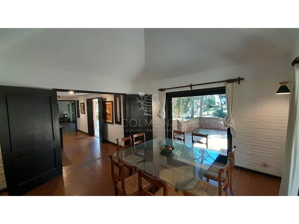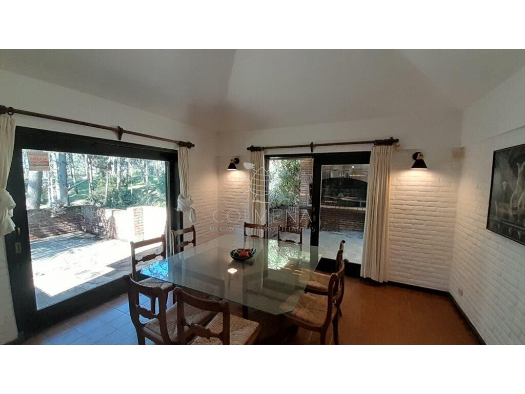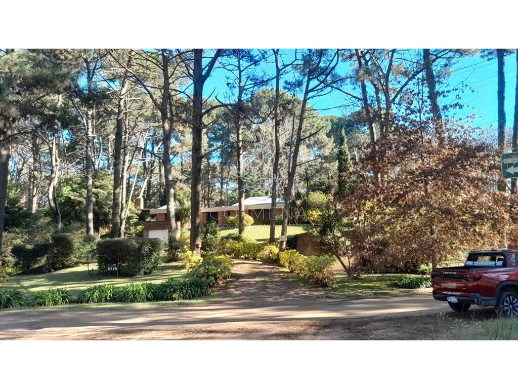 Con un terreno 1300 m2 y 300 m2 edificados aproximadamente. En una sola planta, ambientes amplios, doble circulación, Living con estufa a leña, comedor, toilette de recepción, amplia cocina, lavadero, 3 dormitorios, 2 baños (principal en suite), dependencia de servicio. Parrillero. Hermoso jardín. Casa ideal para vivir todo el año. En un entorno muy agradable de bosque y pinos.