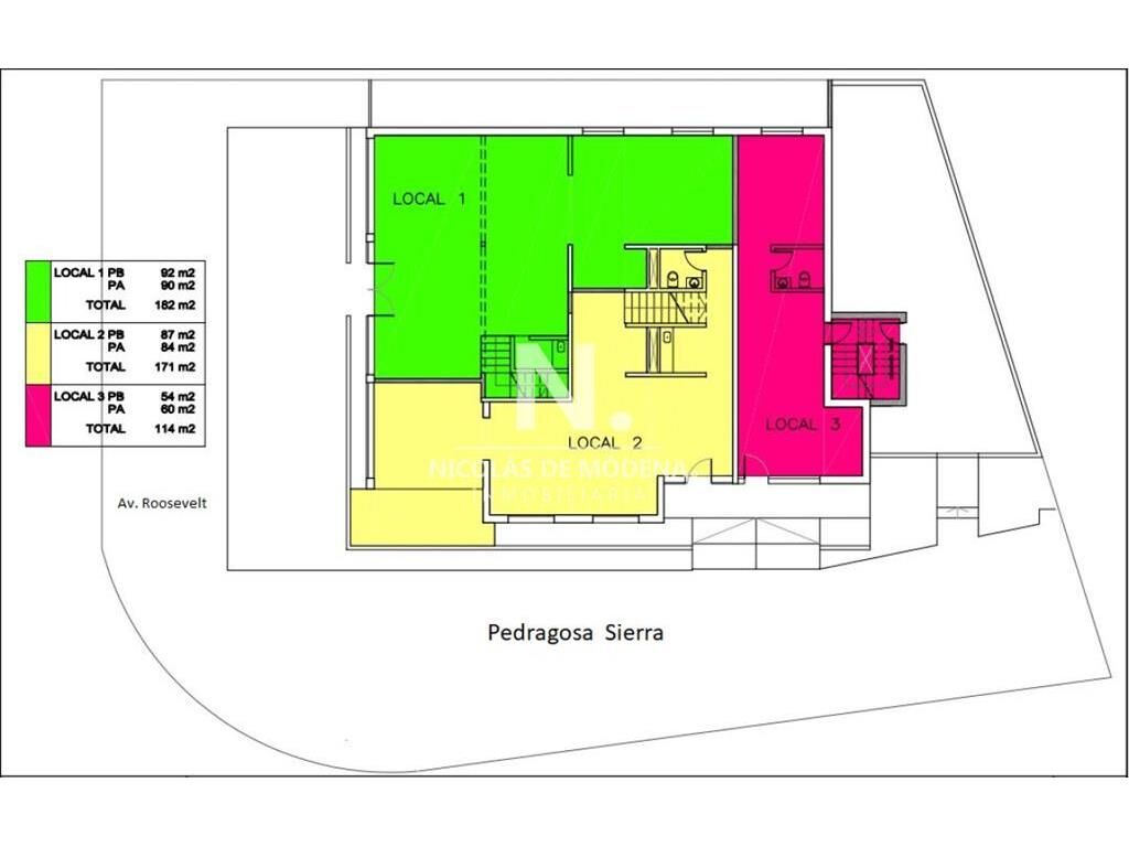 En un terreno, de 800 metros cuadrados, se encuentra un amplio bloque con 3 locales comerciales. Con cocina y baños.