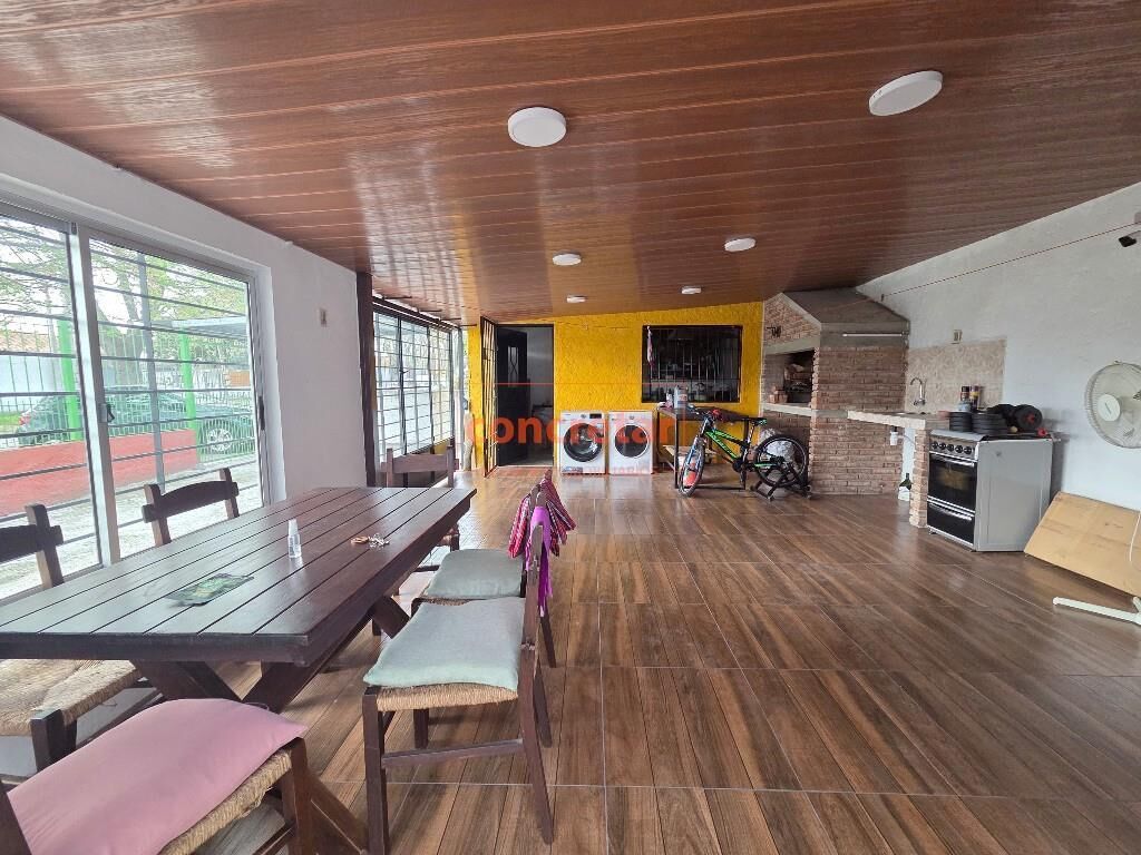 Gran patio de concreto con sectores enjardinados y espaciosa barbacoa con parrillero y baño completo. Garaje de buena dimensión. Posibilidad de ingresar varios vehículos en patio.