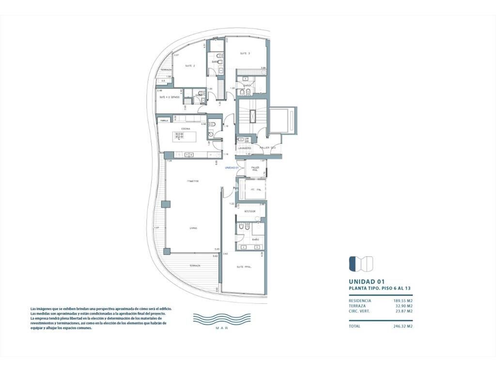 En el edificio más icónico de Punta del Este se encuentra esta increíble opción de departamento a estrenar. Unidad esquinera 01 en torre 1 con orientación a Punta Ballena. Planta de 251 m2 totales con 191 m2 internos y 33 m2 de terraza al mar. Increíble planta de amplio living comedor. Cocina con parrilla americana incluida, lavadero y cuatro dormitorios en suite.
