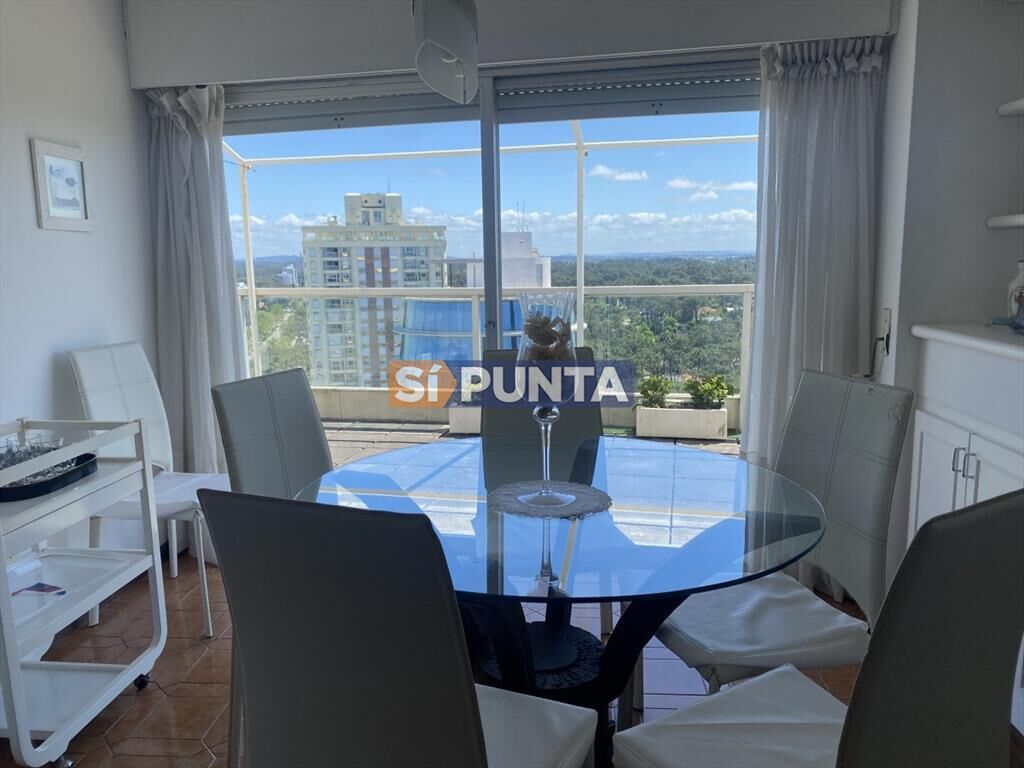 Pent house, gran terraza con vista panoramica a Punta del Este y alrededores. 2 dormitorios, 2 baños, living comedor, cocina con dependencia de servicio. Garage.EL edificio cuenta con servicio de mucamas, piscina, gimnasio y sala de reuniones