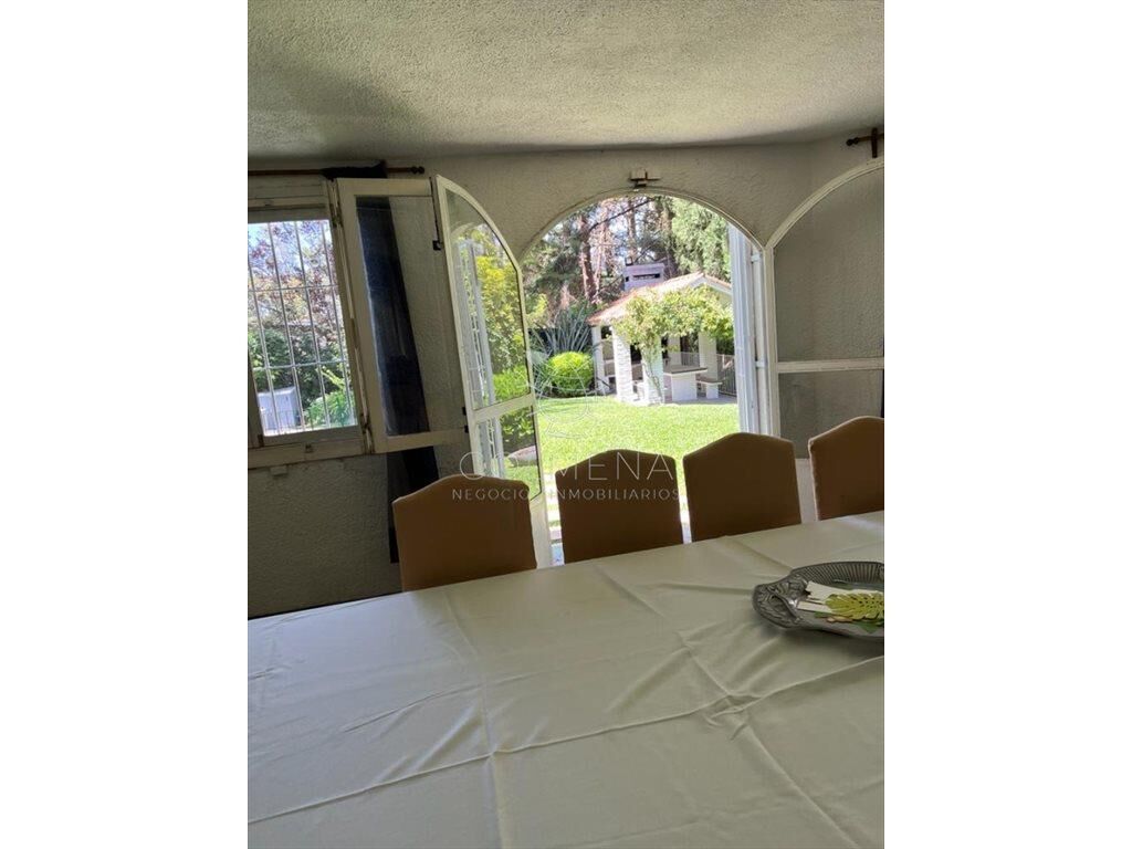 Gran living con hogar a leña, amplio comedor con vista y acceso al parque.