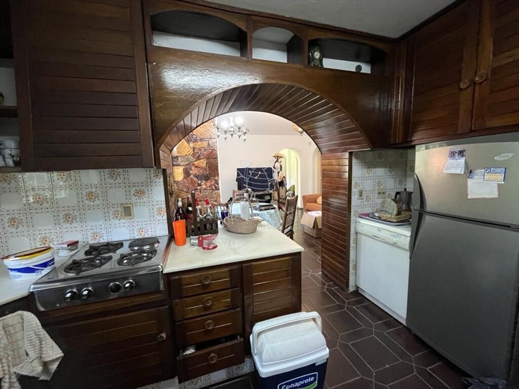 Cocina con amplia isla y parrillero con comedor diario y sala de esta.