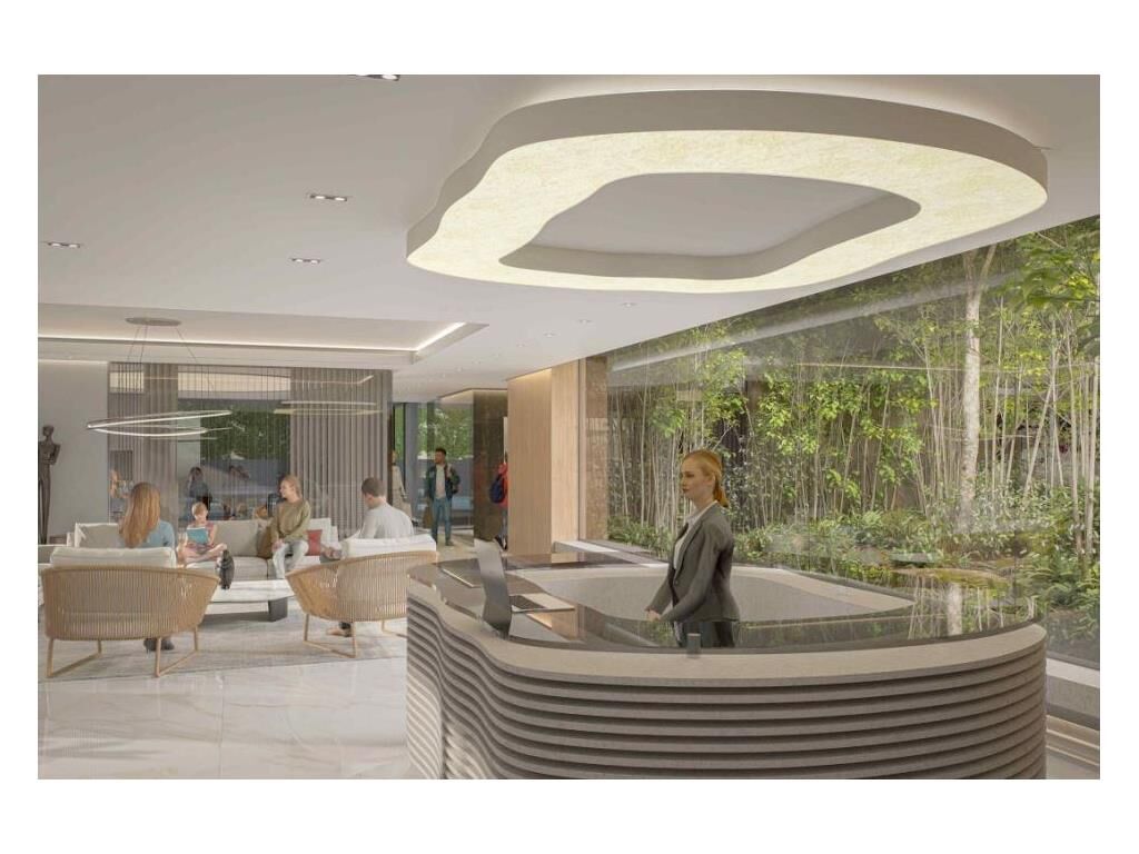 Hall de ingreso jerarquizado, con una recepción amplia e iluminada naturalmente por el gran patio interno estilo bosque. (13m x 12m)