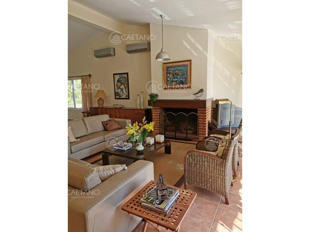 4 dorm., 2 en suite, gran Living comedor amplia cocina moderna, todos los ambientes con aire acondicionado y también el boungalow independiente 1 dorm y 2 camas y baño. Cochera para 4 autos, parque cerrado arbolado, jardín ceped.