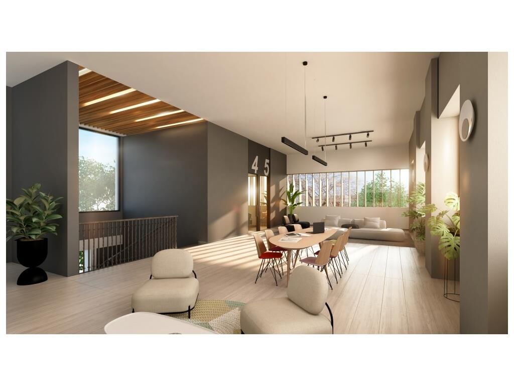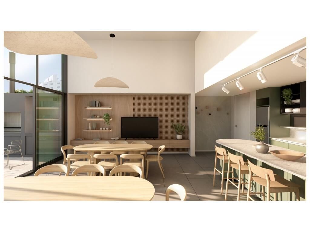 El edificio cuenta con gimnasio con equipamiento movil, sum con cowork, juegos para niños, sala de juegos, y lavanderia y garaje en subsuelo.