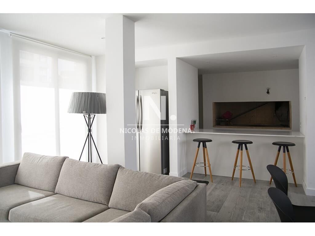 El apartamento cuenta con una cocina amplia y totalmente equipada, pensada para quienes disfrutan de la funcionalidad y la practicidad. Los espacios de living y comedor han sido diseñados para aprovechar la luminosidad natural y ofrecer un ambiente cálido y sofisticado.