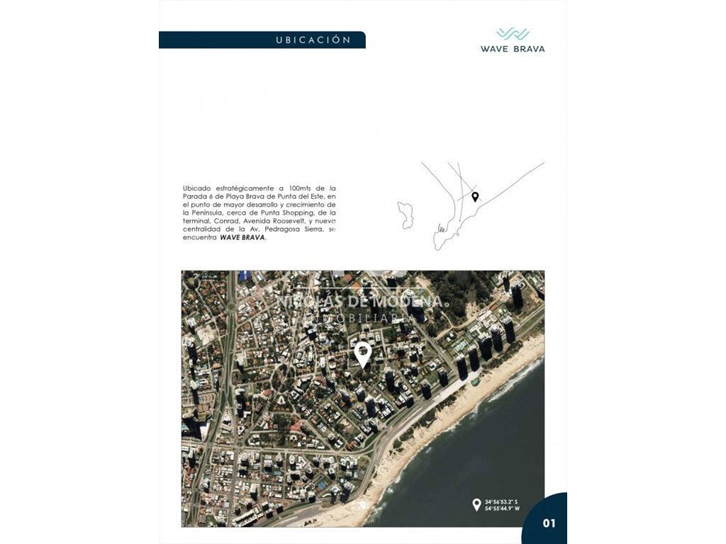 Ubicado estratégicamente a 100 metros de la Parada 6 de Playa Brava de Punta del Este, en el punto de mayor desarrollo y crecimiento de la Península, cerca de Punta Shopping, de la terminal, Conrad, Avenida Roosevelt, y nueva centralidad de la Av. Pedragosa Sierra, se encuentra WAVE BRAVA.