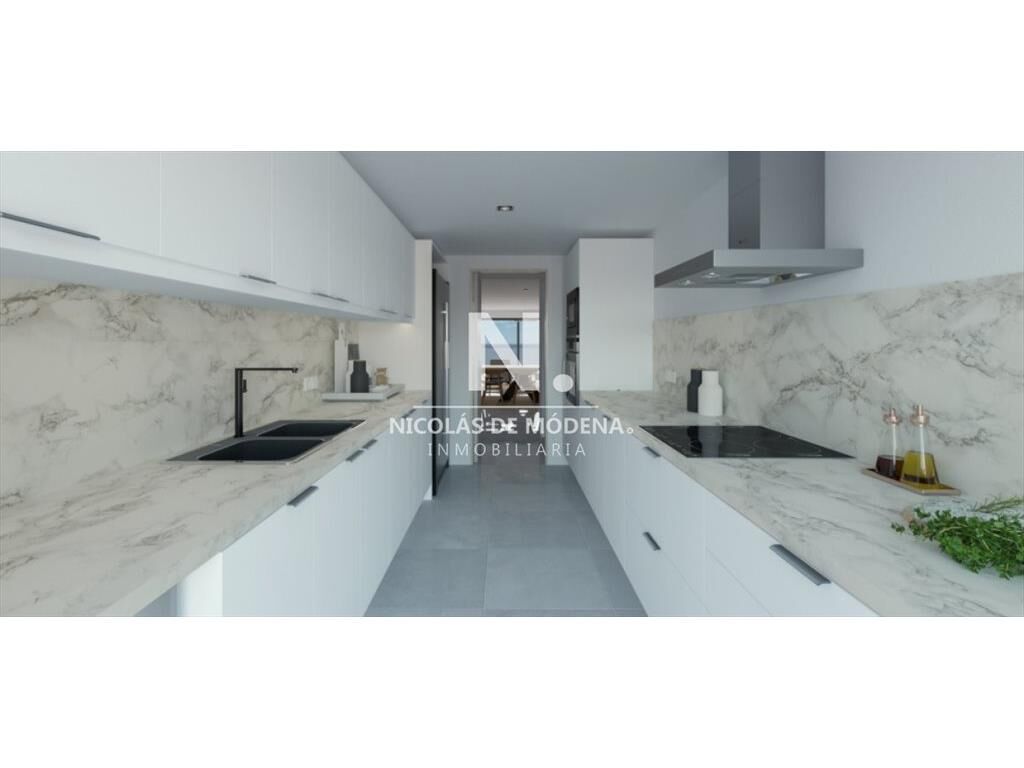 Cocina definida con lavadero y terraza.