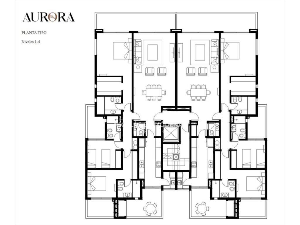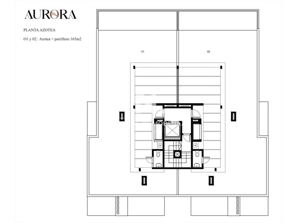 4 niveles de dos apartamentos por planta con vistas hacia el mar, ventilación cruzada y amplias terrazas; y una azotea transitable con vistas panorámicas.