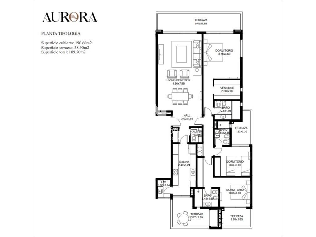 3 dormitorios en suite cada uno con su terraza y el principal con vestidor.