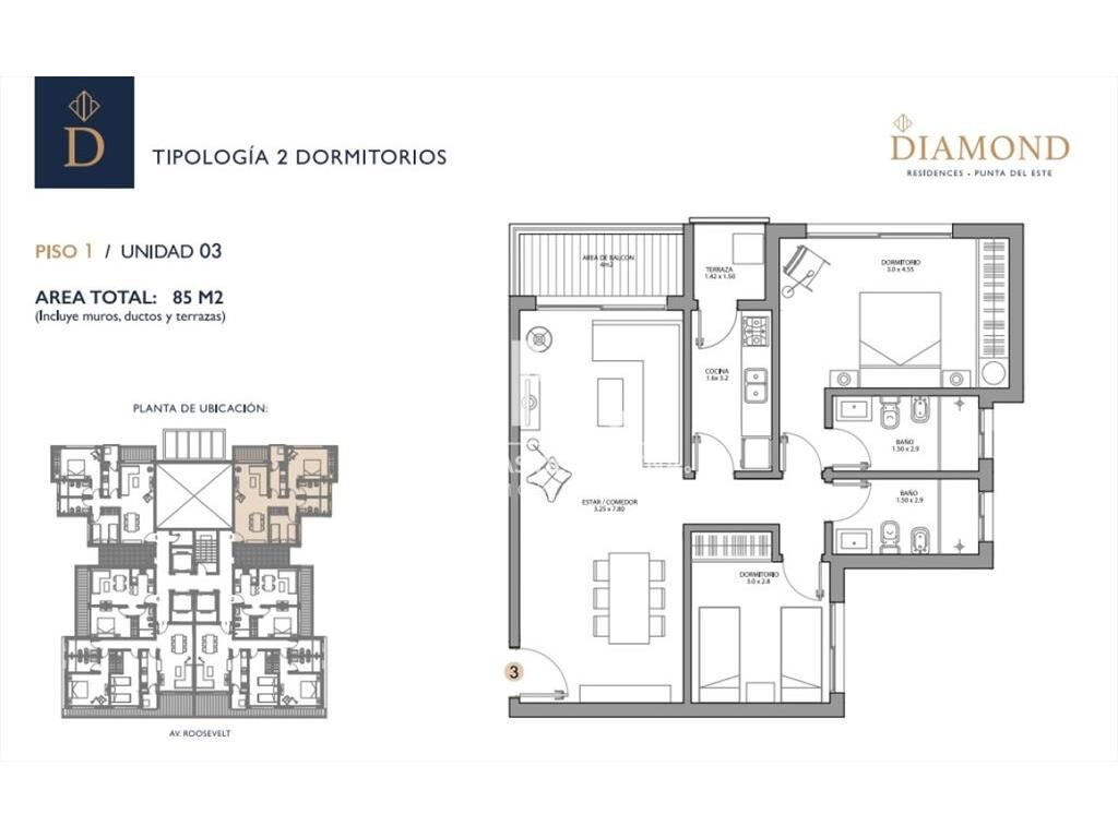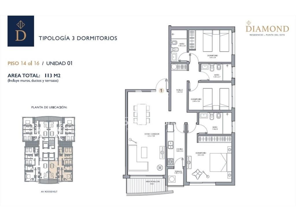 El proyecto constará de 20 pisos de departamentos de 1, 2 y 3 dormitorios y locales comerciales con frente a Av. Roosevelt.
