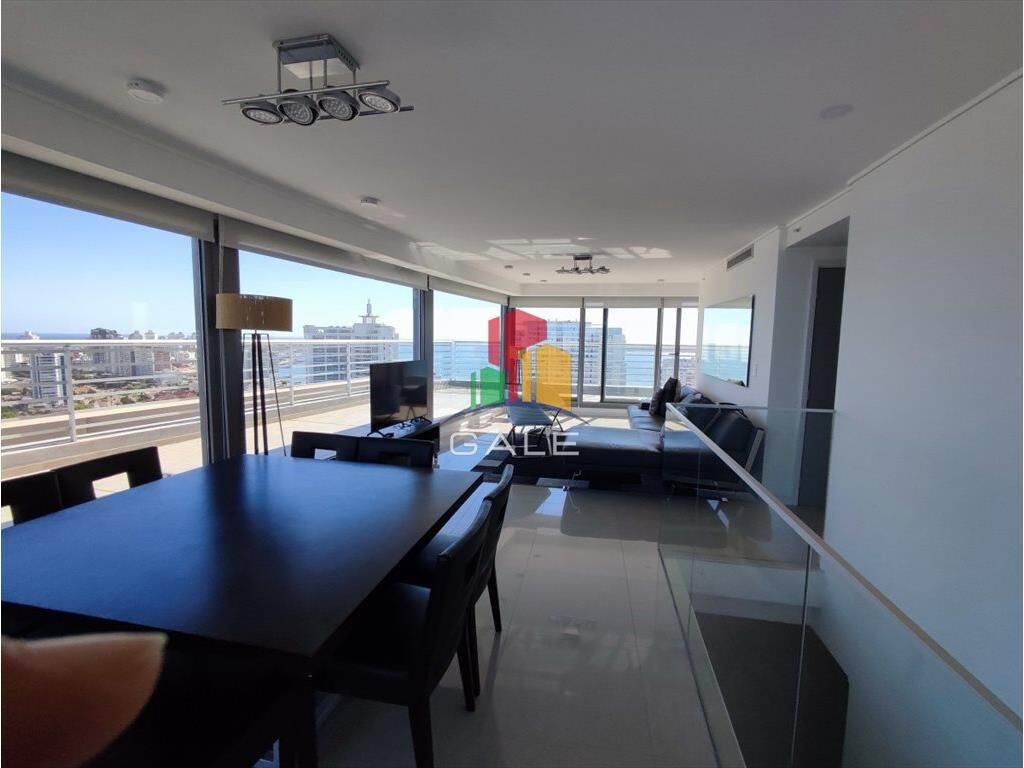 Playa Mansa. Pent house duplex. 3 dormitorios en suite, principal con terraza propia y jacuzzi, living comedor con vista a bosque, brava y mansa, amplia terraza, toilette, cocina, parrillero propio, dependencia de servicio y lavadero. 2 garages.