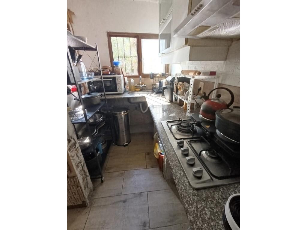 Planta baja: jardín con acceso vehicular, living-comedor al ingreso con estufa a leña, hall distribuidor hacia amplio dormitorio en suite, baño completo, cocina definida con comedor diario. Por cocina se accede a un patio pavimentado con pequeño depósito y parrillero abierto.