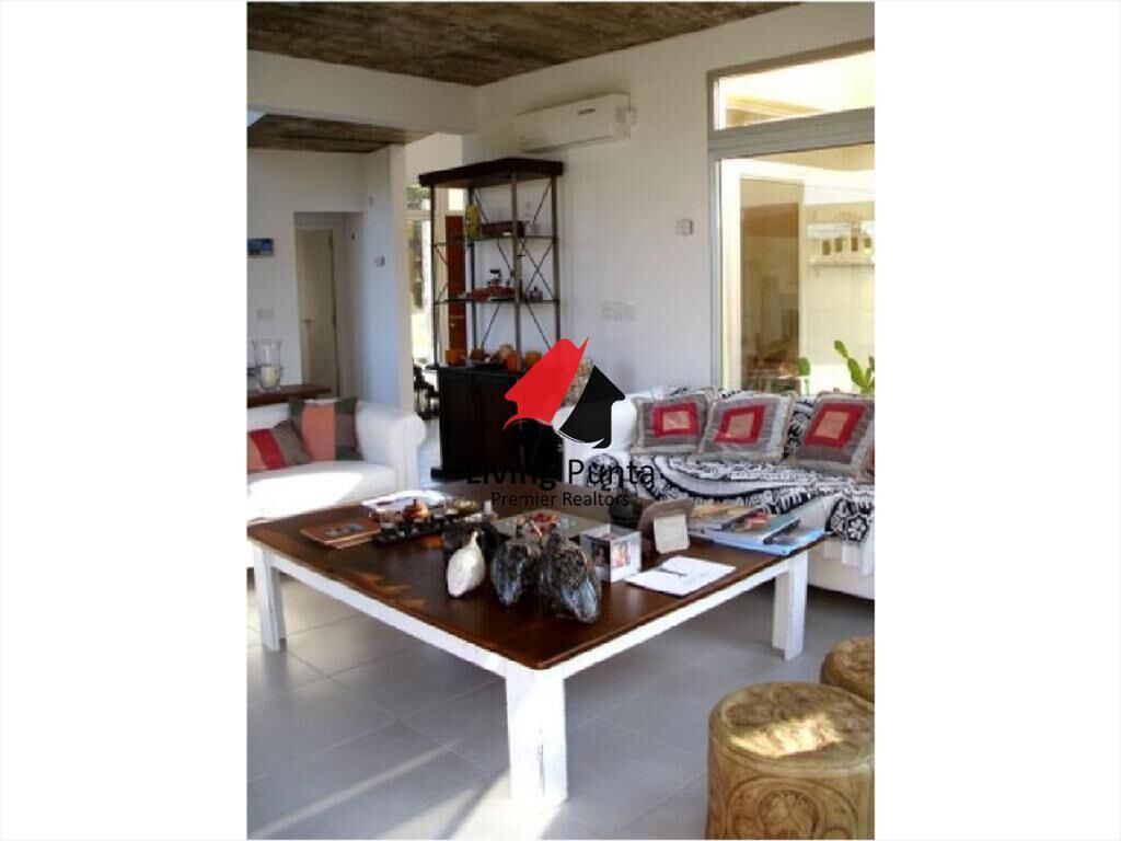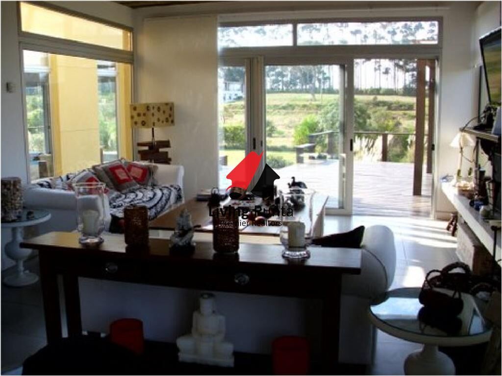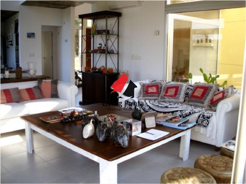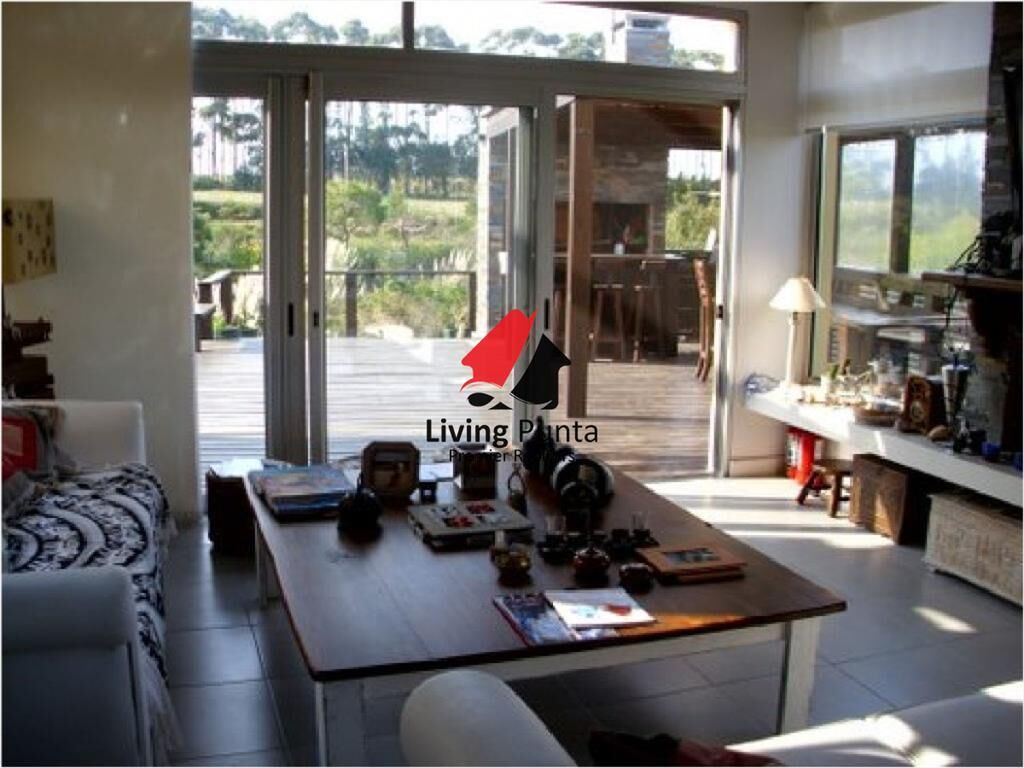 Amplia recepción, living comedor con cocina americana integrada, tres dormitorios en suite, suite principal en planta alta con excelente vista parcial al mar y campo, vestidor, toilette, barbacoa, piscina, jardín , casa de huéspedes y garage para dos autos.