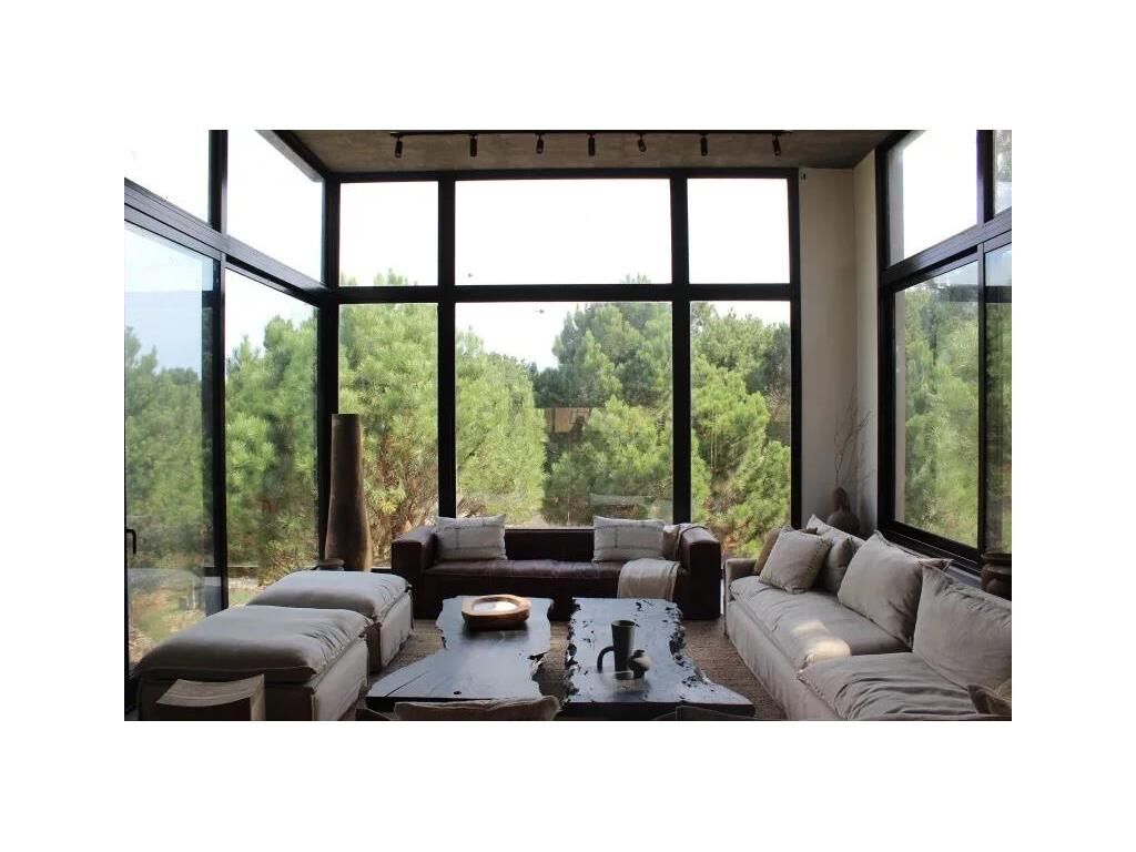 La casa está equipada con calefacción por losa radiante, estufa de alto rendimiento, aire acondicionado y aberturas con doble vidrio, haciendo que sea disfrutable también durante los