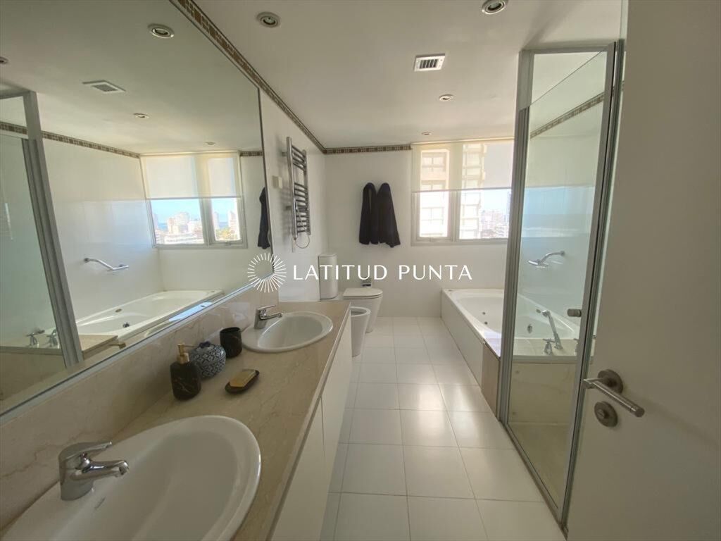 Excepcional planta esquinera con espectacular vista al mar desde todos los ambientes. Amplio living-comedor, balcón terraza con cerramiento, baño social, tres dormitorios en suite, amplia cocina con comedor diario, dependencia de servicio en suite, terraza lavadero, garage para dos autos.