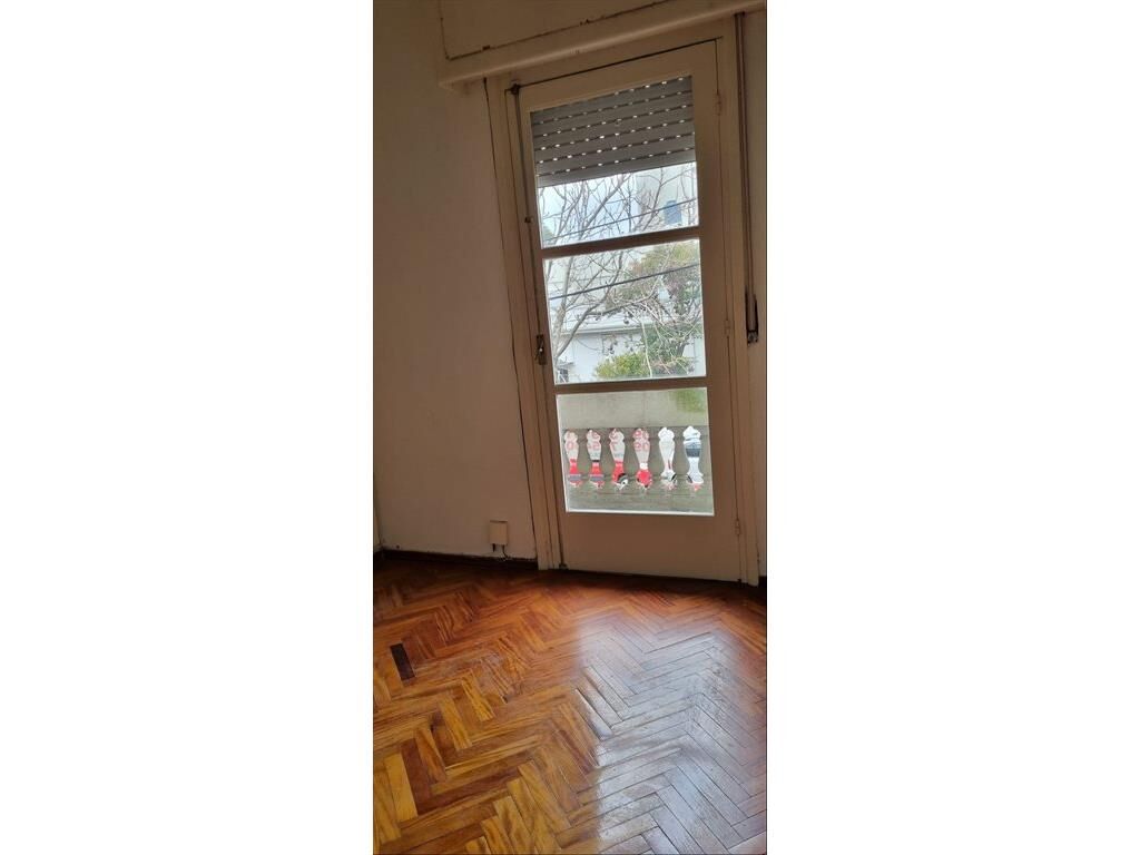 El dormitorio tiene piso de parquet plastificado, placard de piso a techo con mucha capacidad de guardado, acceso a balcón al frente por puerta de madera y vidrio y persianas de PVC.