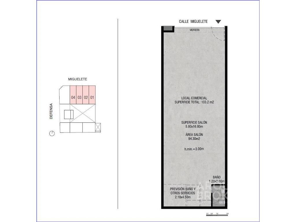 Planta baja al frente con orientación norte sobre calle Miguelete.