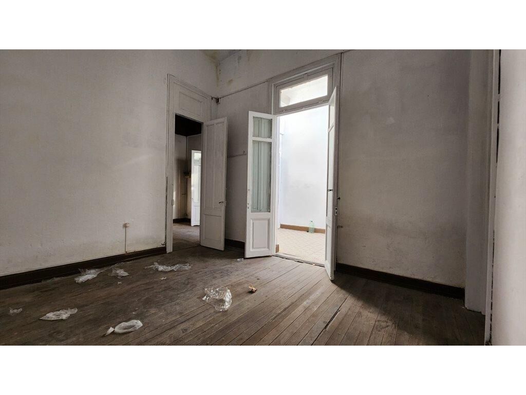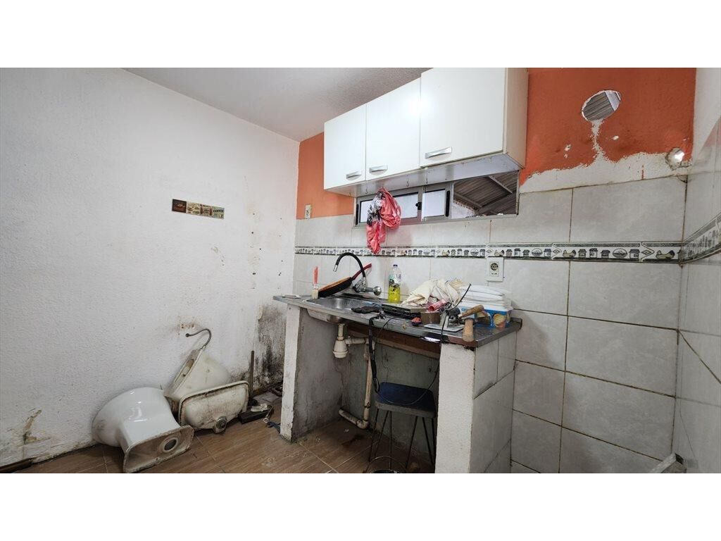 Casa con espacio central, cocina, baño completo, dos habitaciones en planta baja y altillo.