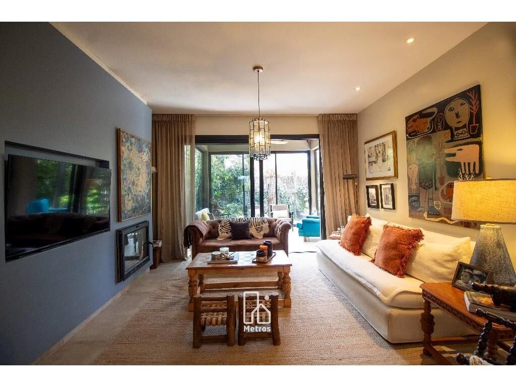 3 dormitorios, uno de ellos con walk-in-closet y baño en suite • Amplio living comedor + estar • Barbacoa cerrada con parrillero + estar • jardín • 3 baños • Cocina con pasaplatos integrado al comedor.