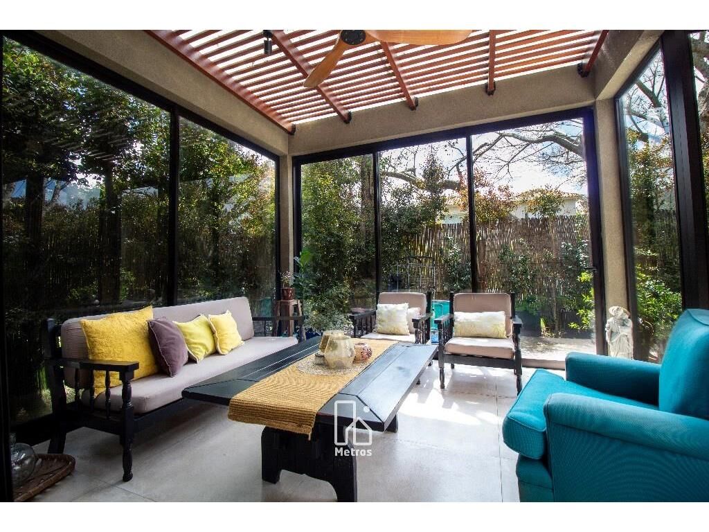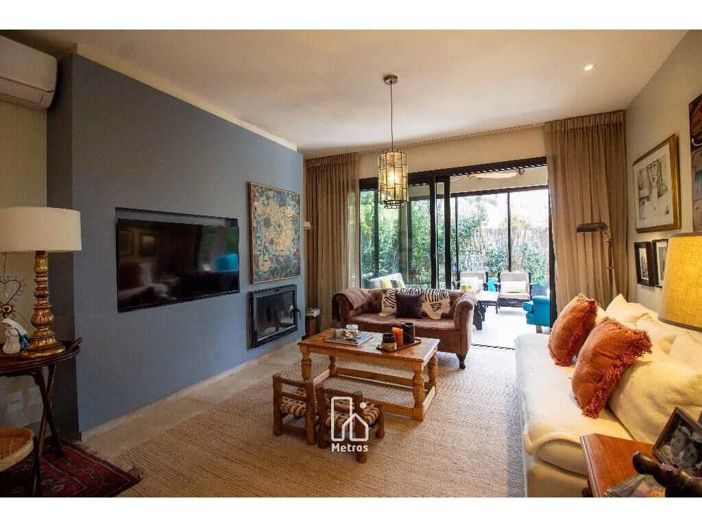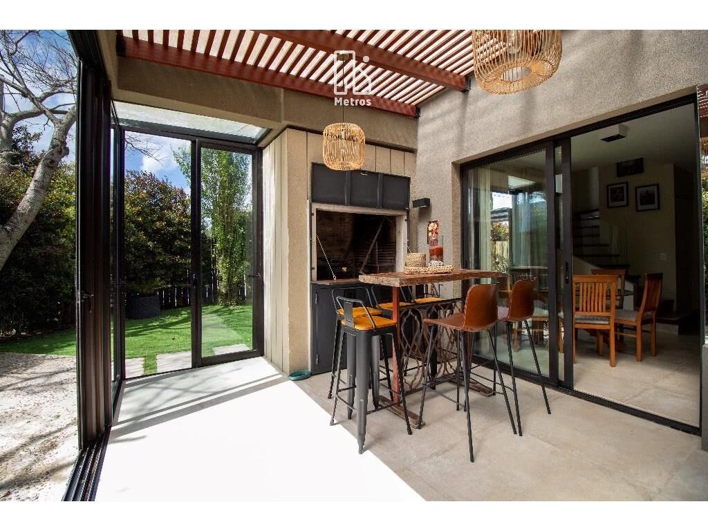 El living se vincula a una cómoda barbacoa cerrada con parrillero, ideal para disfrutar todo el año, desde la cual se accede al jardín orientado al noreste, con sol desde la mañana hasta pasado el mediodía.