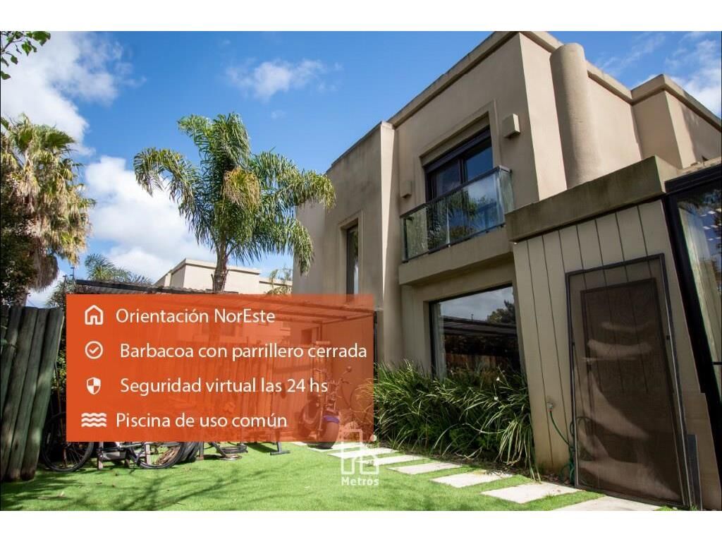 Orientación NorEste • Construcción tradicional • Amplio living comedor + Estar • Barbacoa con parrillero cerrada + 2do. Estar • Jardín • Piscina • Garage para 2 autos • Seguridad virtual las 24 hs,• ¡Calle central Ideal para que tus hijos anden solos dentro del Housing!