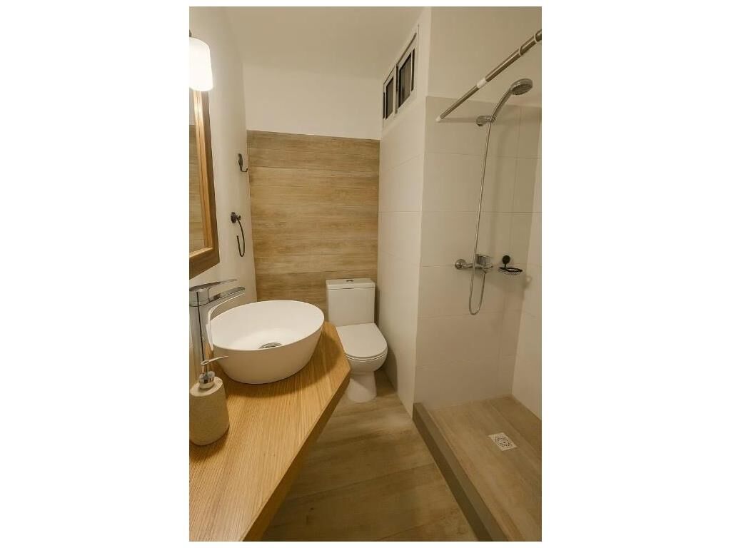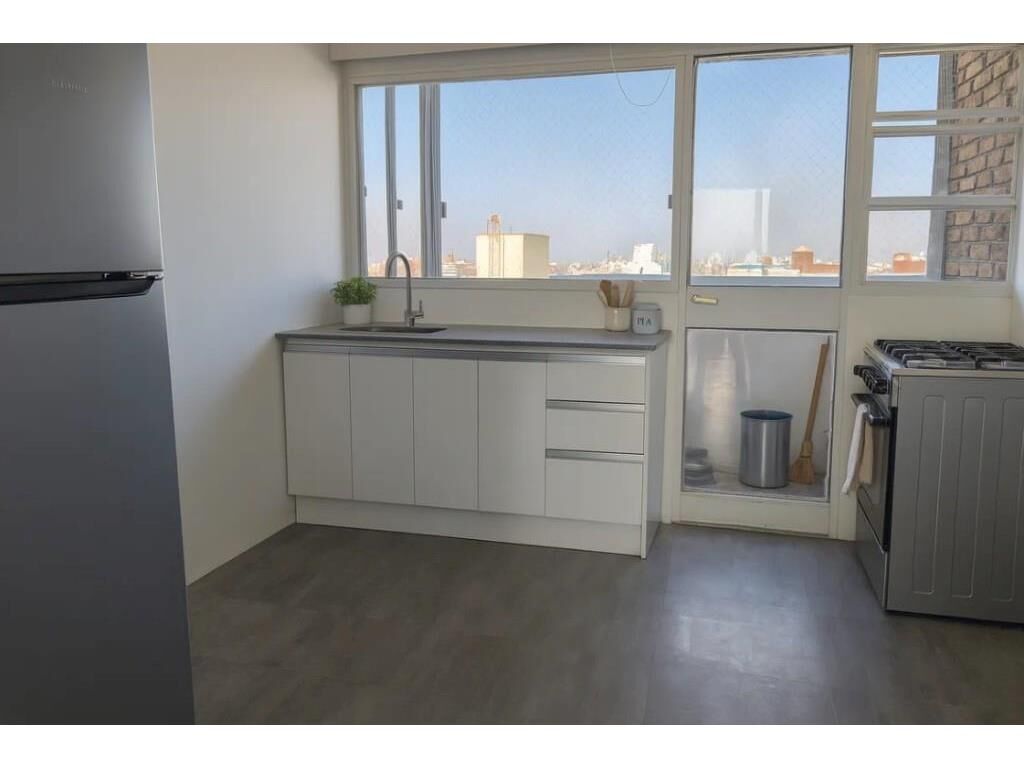Cocina reciclada a nuevo, con espacio para desayunador y acceso a una cómoda terraza lavadero independiente. Baño completo también renovado, con materiales de alta calidad.