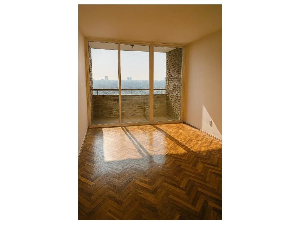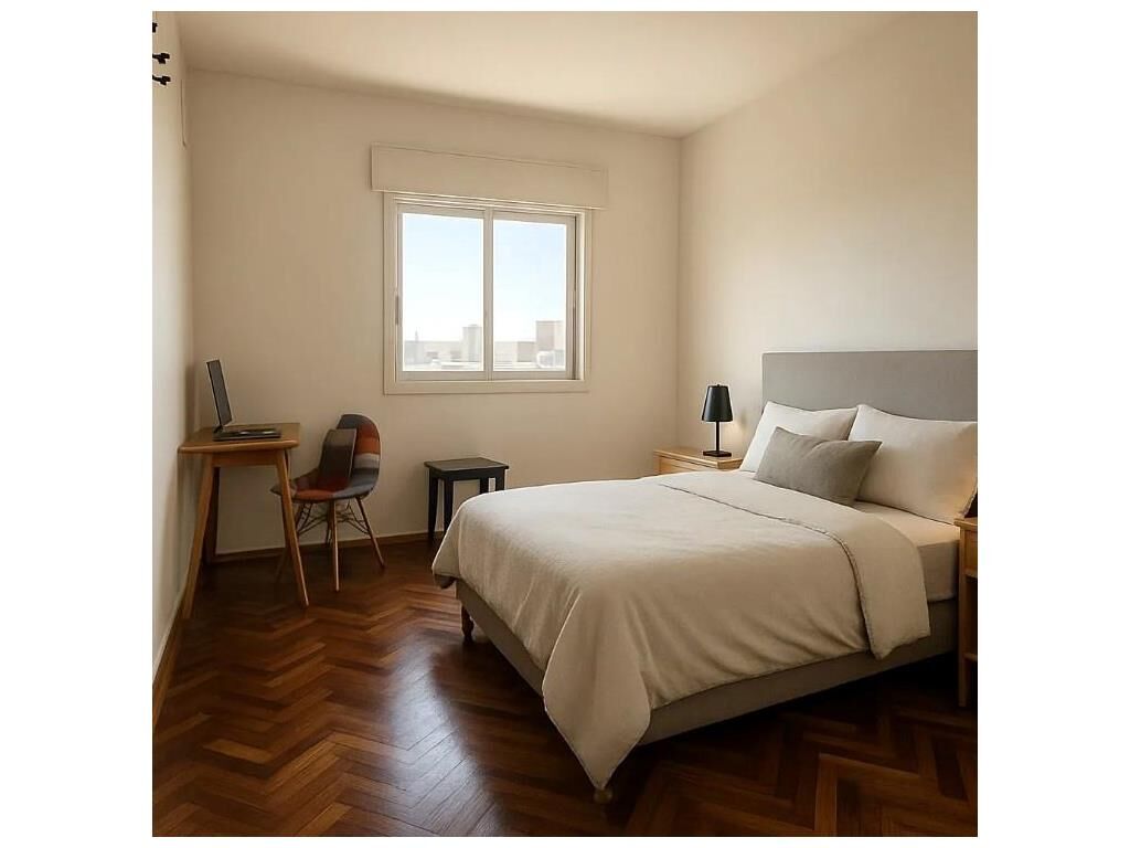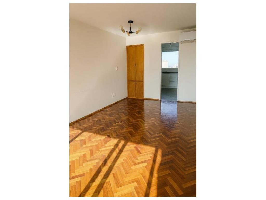 Pisos de parquet plastificados en excelente estado en living y dormitorio.