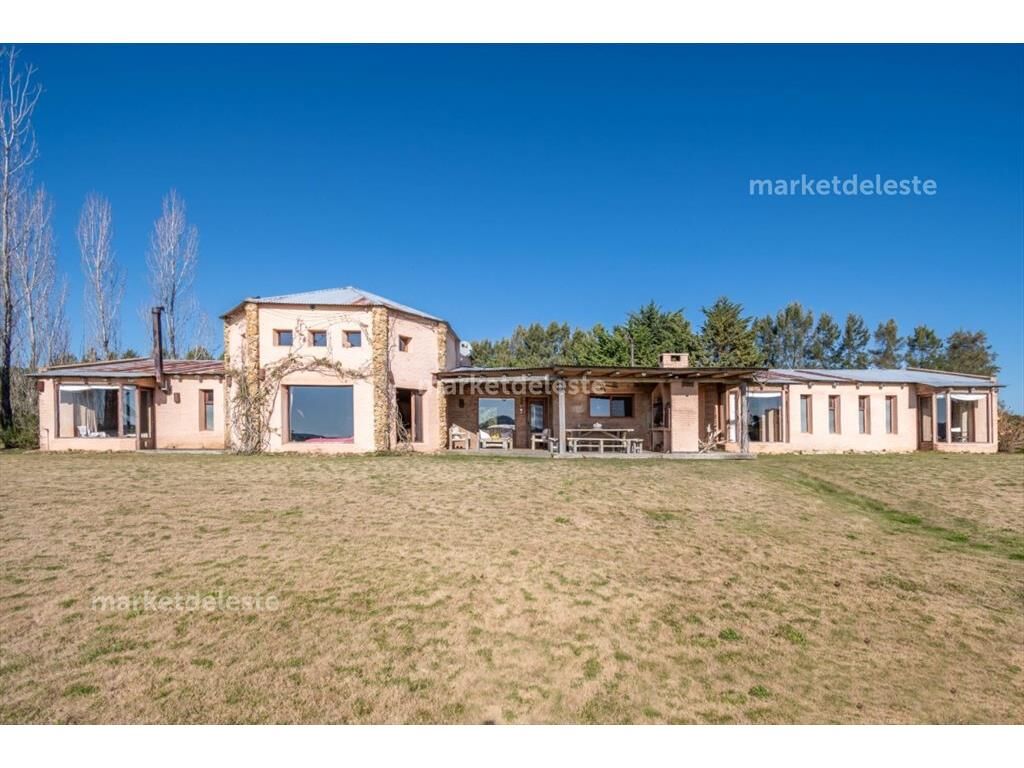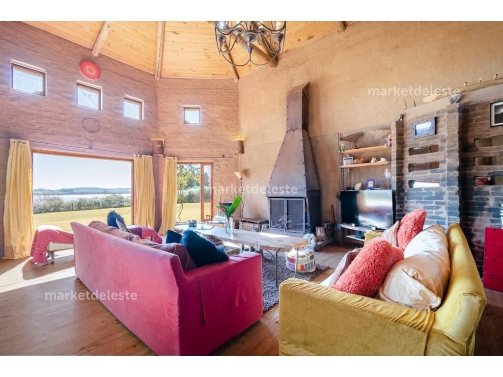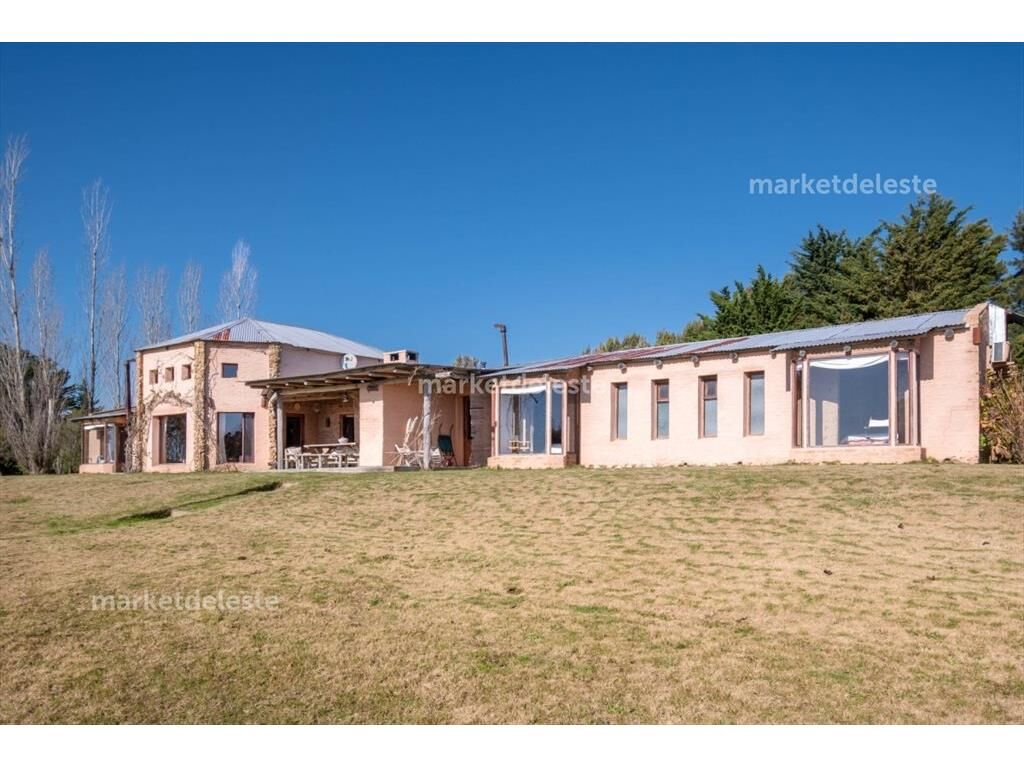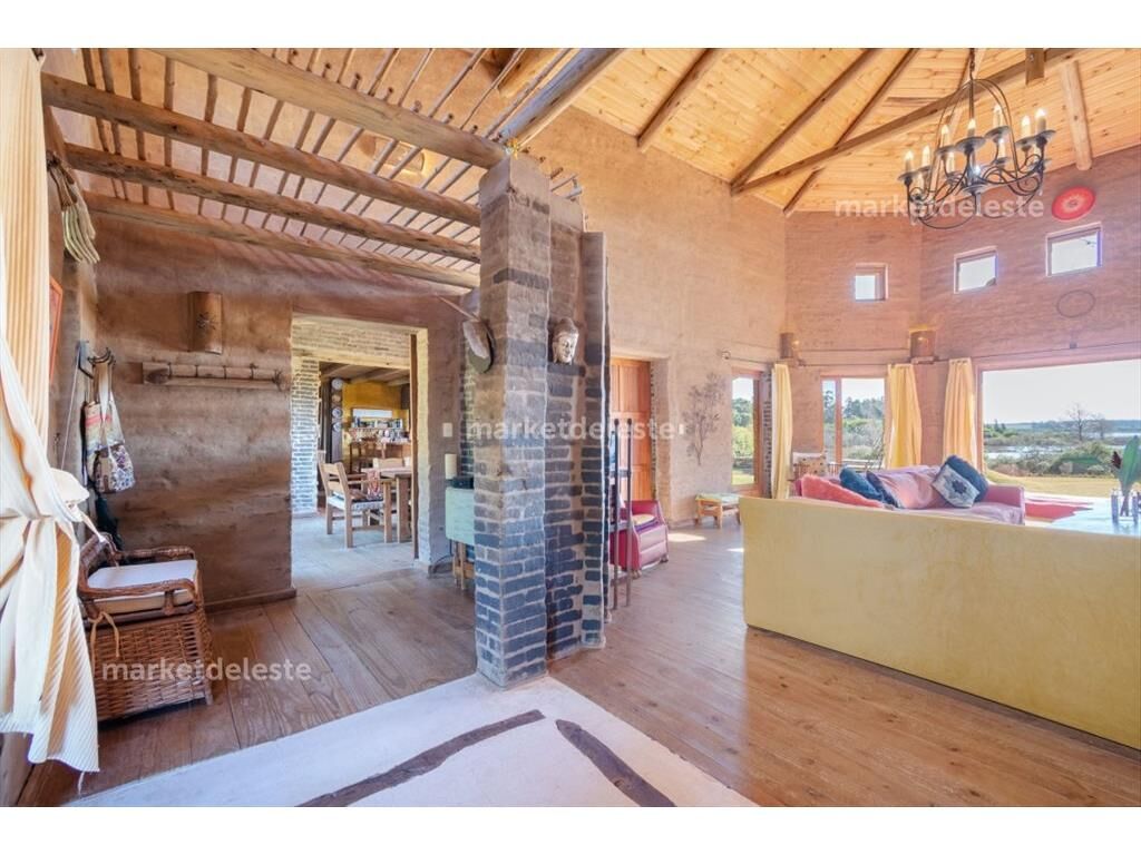 Magnífica chacra sobre la Laguna del Sauce, única por su construcción en tierra de adobes, ofreciendo ventajas inigualables en cuanto a aislamiento y regulación de la humedad. Al ingresar al lote de 10.062 m2 nos recibe un increíble tajamar, y sigue el casco de 405 m2 que cuenta con 5 dormitorios en suite, un escritorio, amplio living con gran vista y estufa a leña, comedor para 16 personas y una piscina hacia la laguna de 10 x 5 metros.
