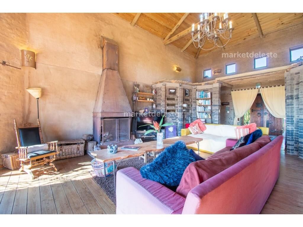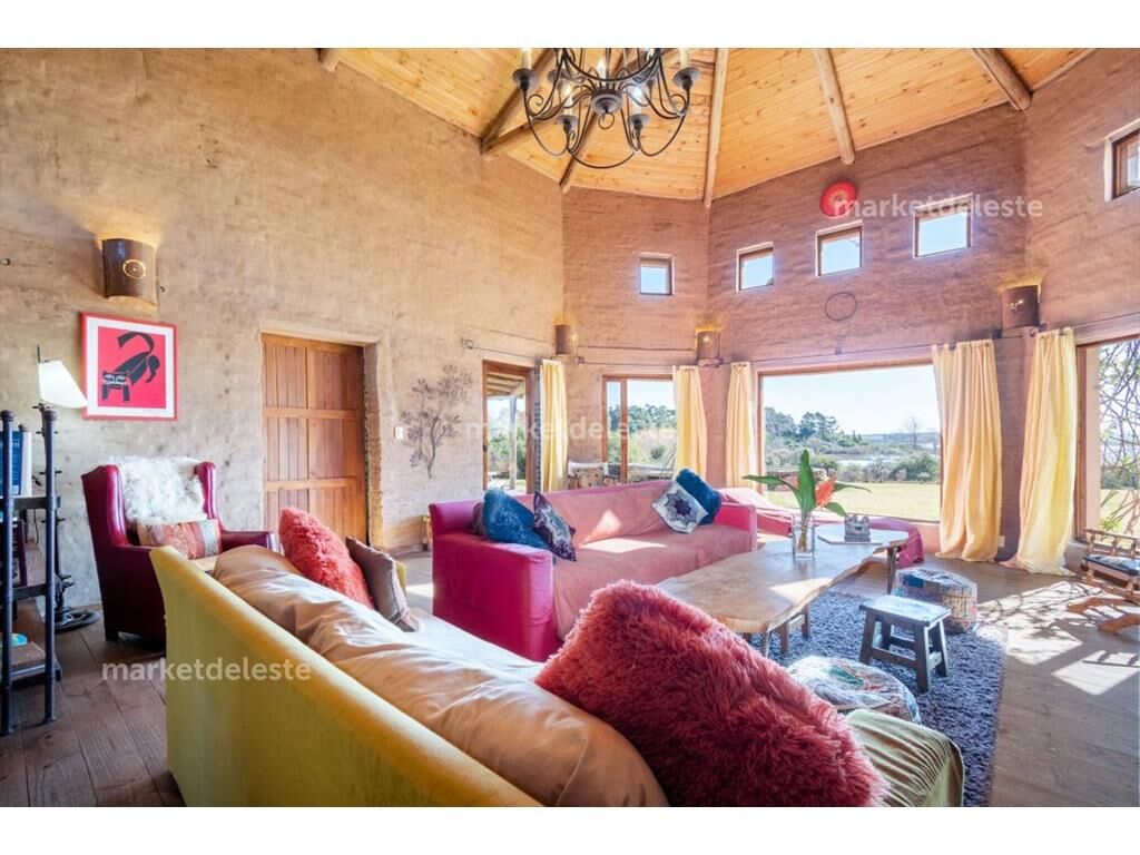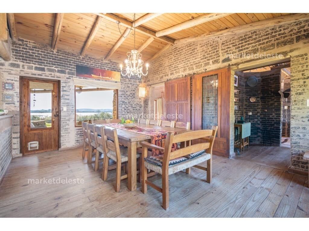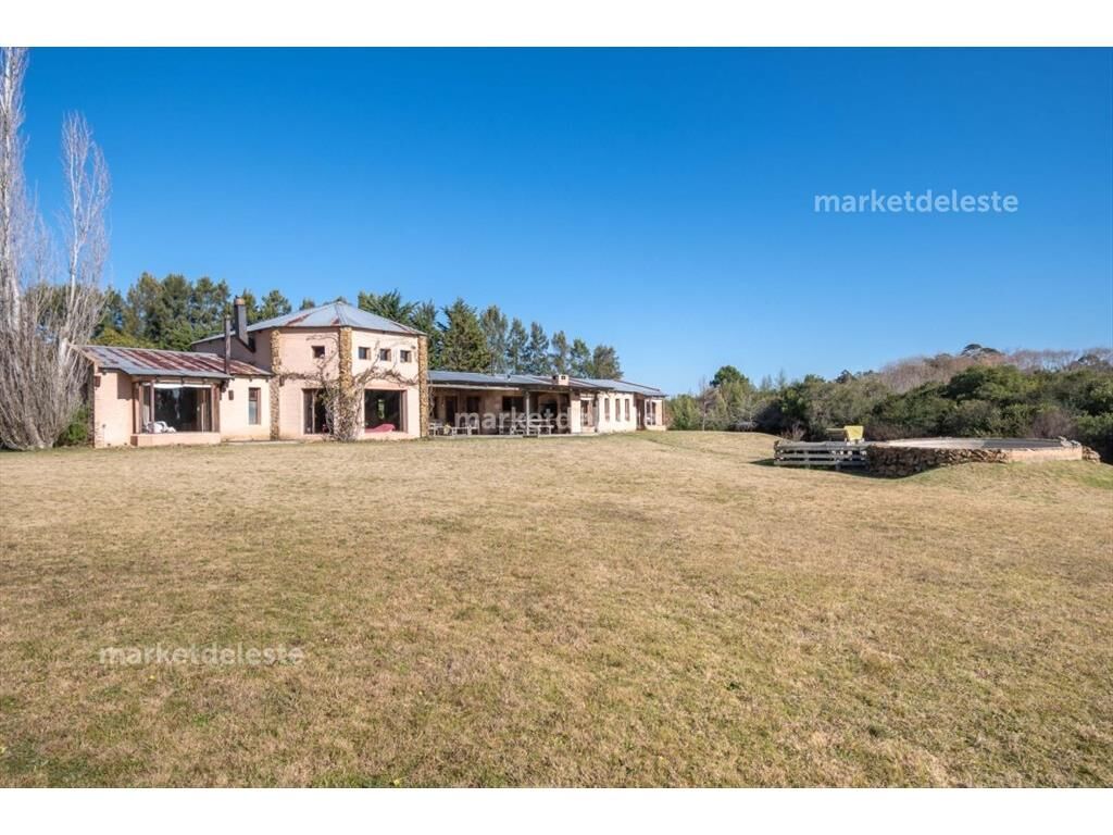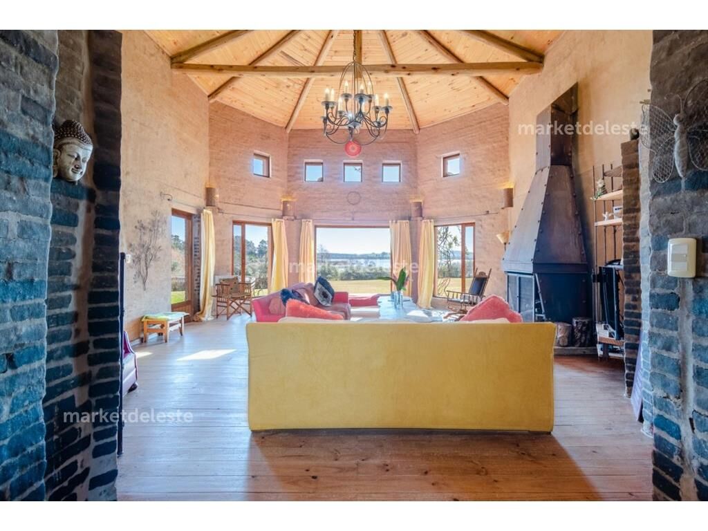 Magnífica chacra sobre la Laguna del Sauce, única por su construcción en tierra de adobes, ofreciendo ventajas inigualables en cuanto a aislamiento y regulación de la humedad. Al ingresar al lote de 10.062 m2 nos recibe un increíble tajamar, y sigue el casco de 405 m2 que cuenta con 5 dormitorios en suite, un escritorio, amplio living con gran vista y estufa a leña, comedor para 16 personas y una piscina hacia la laguna de 10 x 5 metros.