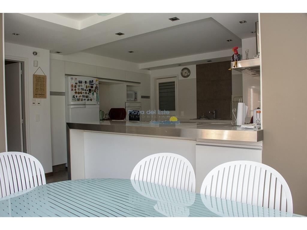 Excelente propiedad, totalmente reciclada a pasos de la rambla mansa, en una de las paradas más lindas. Amplio living y comedor con estufa leña, escritorio, 5 dorm, 4 baños (3 en suite), baño social en el parrillero, gran parrillero techado, sistema de calefacción a gas por radiadores, amplio jardín.
