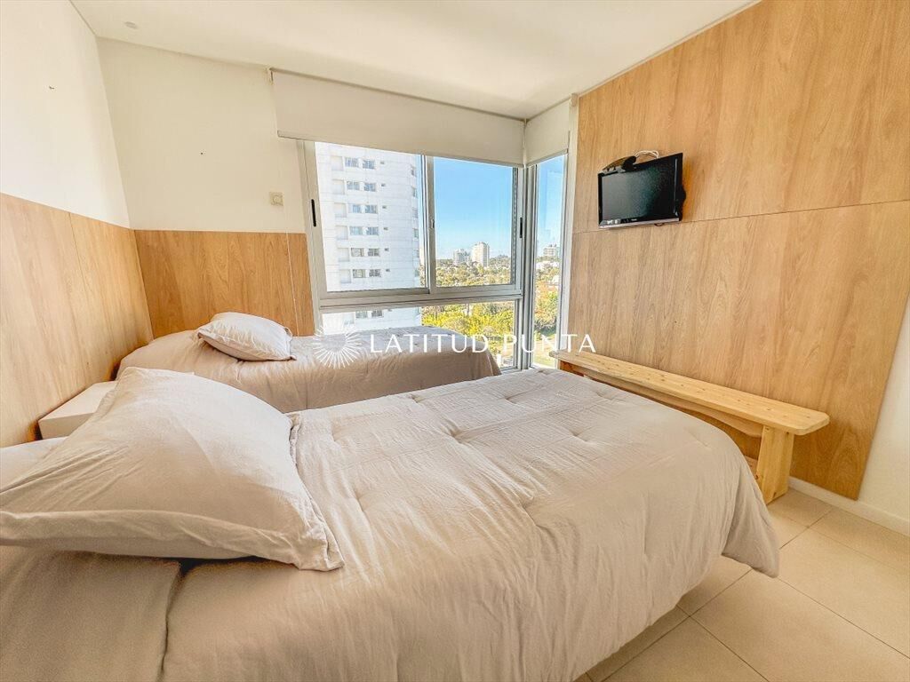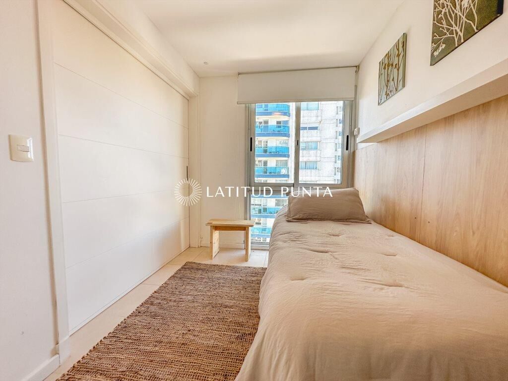 Cómodo apartamento en Mansa, a pasitos de Enjoy Conrad. Excelente orientación solar, con vista parcial al mar. Living-comedor con salida a terraza. Cocina definida con lavadero. 3 dormitorios, 2 baños completos, principal en suite. Posibilidad de integrar el tercer dormitorio al living, con puerta corrediza. Garage en subsuelo. Edificio con amenities completos.