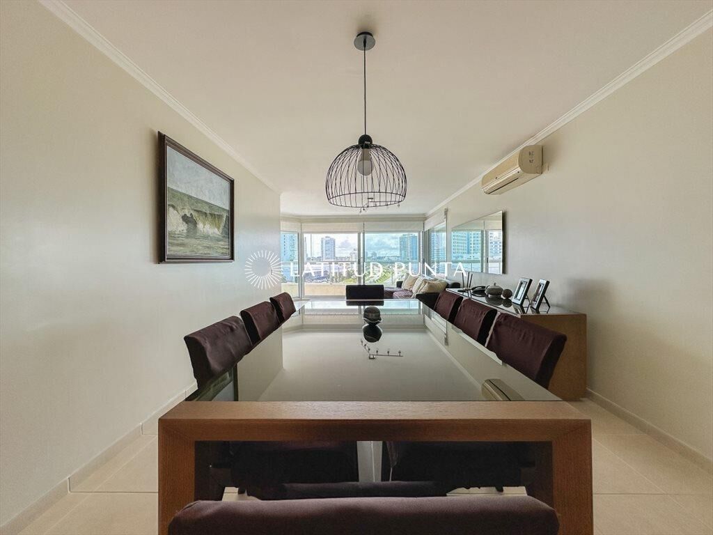 Hermosas vistas al mar desde este apartamento a pasitos de playa Mansa, orientado hacia el Norte, super luminoso. Amplio living-comedor, terraza con parrillero y cerramiento, cocina definida con comedor diario. 3 dormitorios (principal en suite con vestidor), 2 baños completos más toilette. Dependencia con baño. Garage en subsuelo. Edificio con amenities completos.