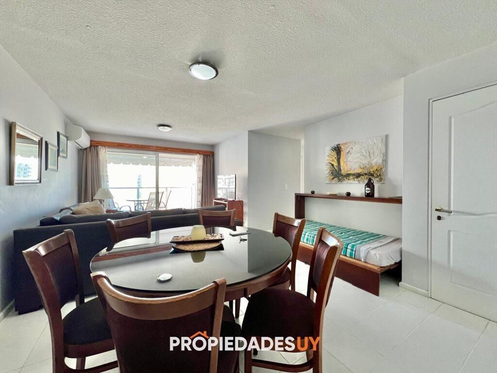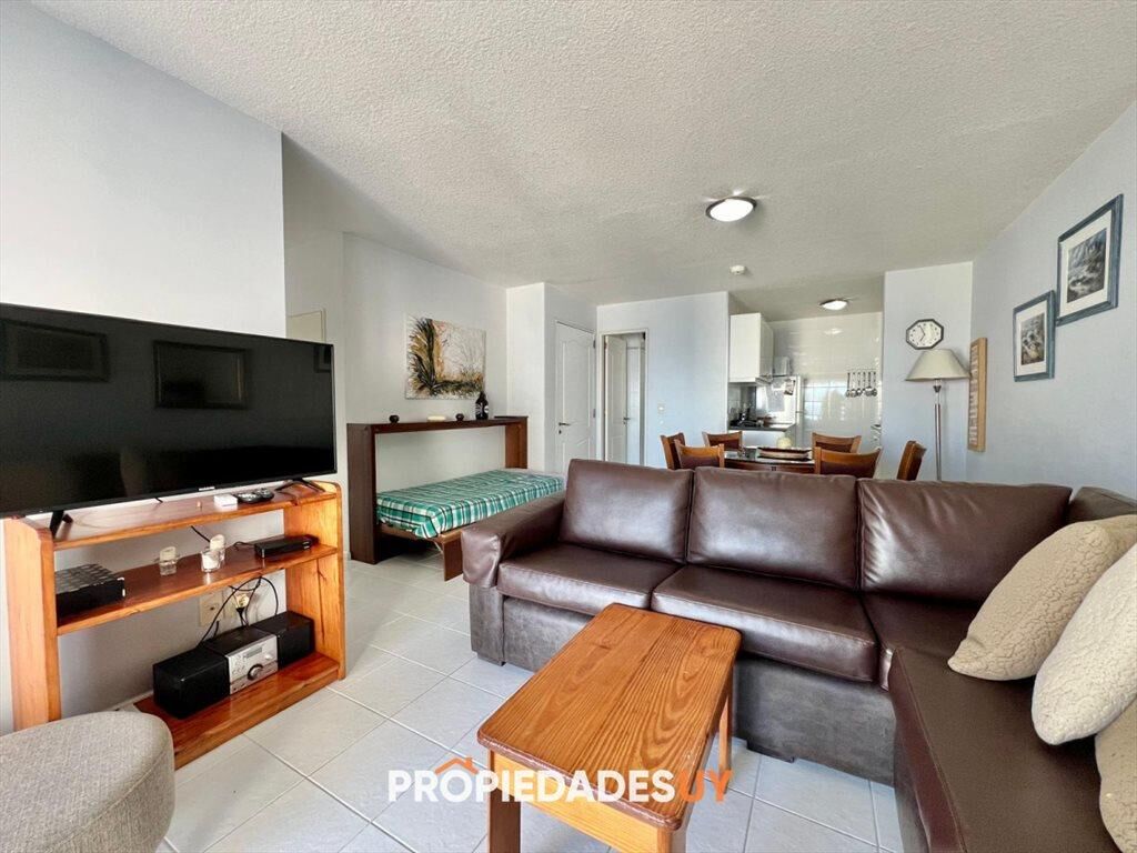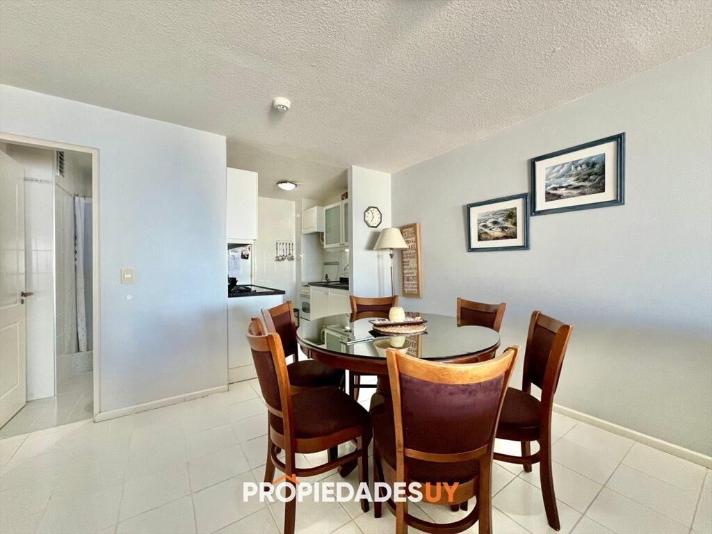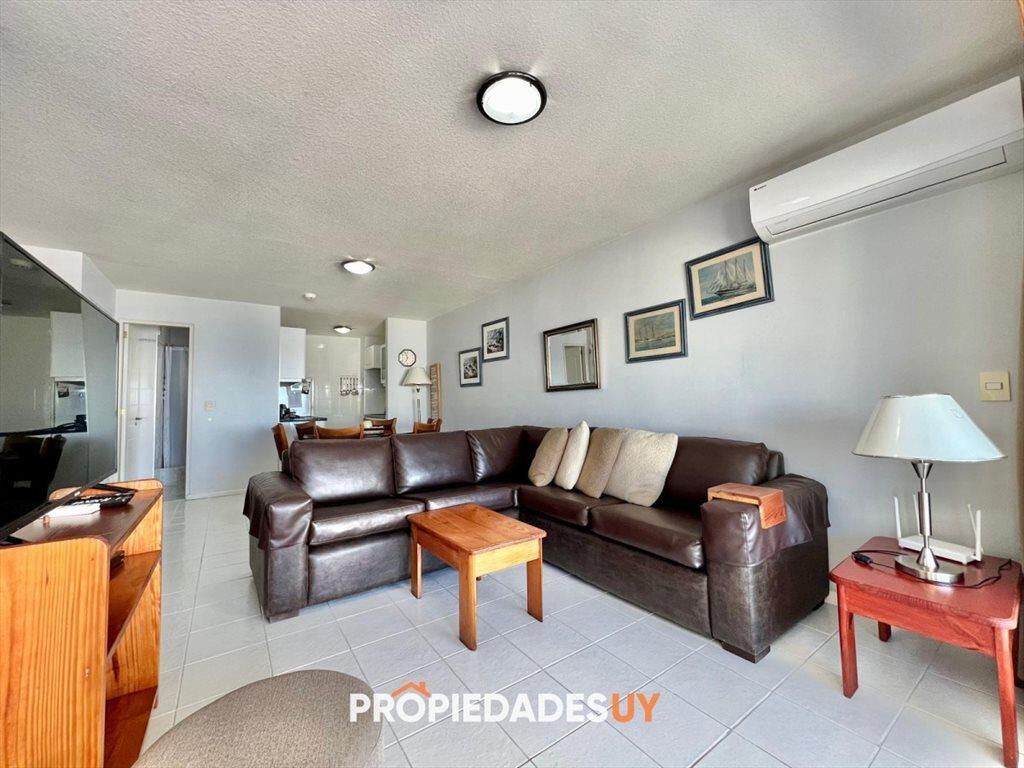 Living comedor con terraza abierta y vista al mar, cocina integrada, dos dormitorios, dos baños.