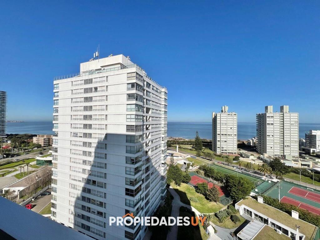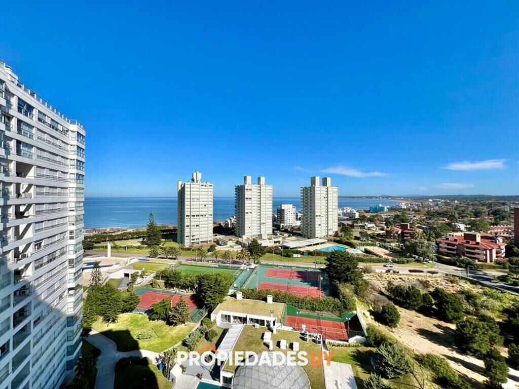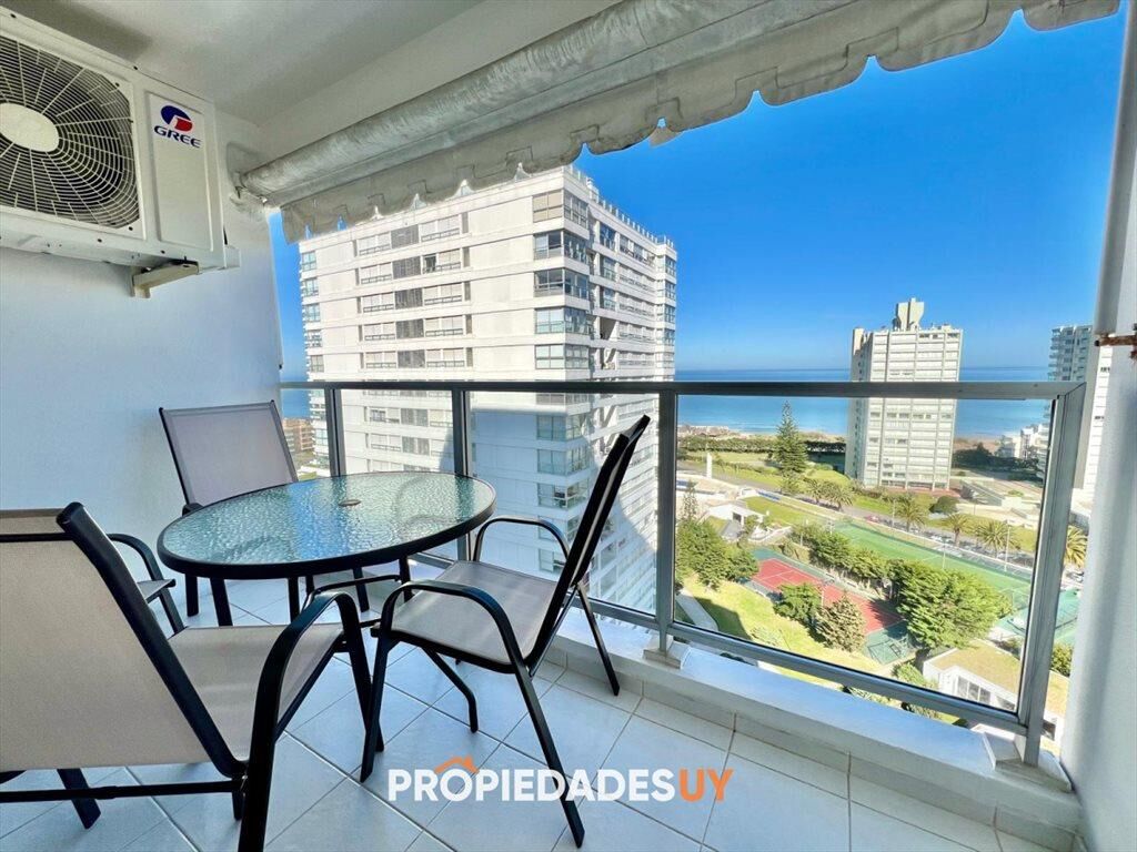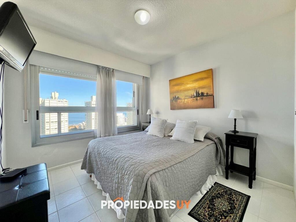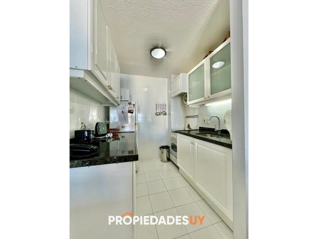 Living comedor con terraza abierta y vista al mar, cocina integrada, dos dormitorios, dos baños.
