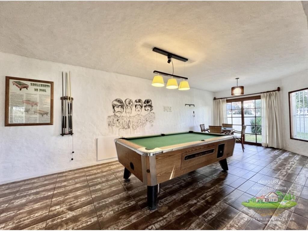 Gran jardín, totalmente cercado, donde se ubica la piscina climatizada junto a la barbacoa cerrada, que cuenta con mesa de ping pong, pool, cocina y un muy buen espacio para recibir invitados. También tiene su baño completo.