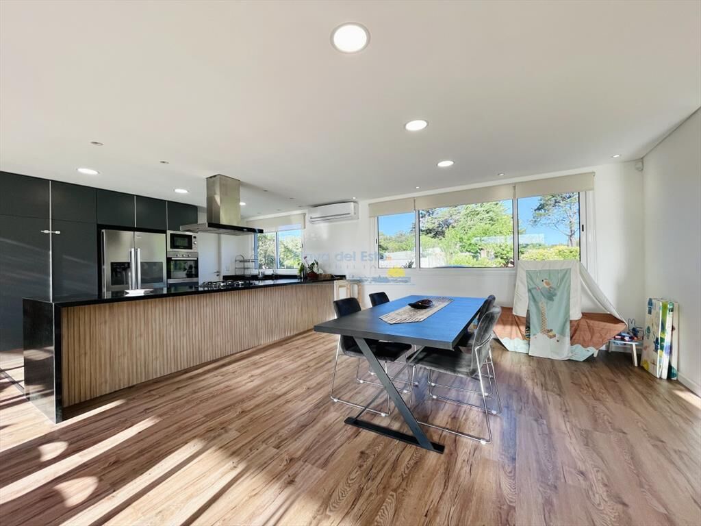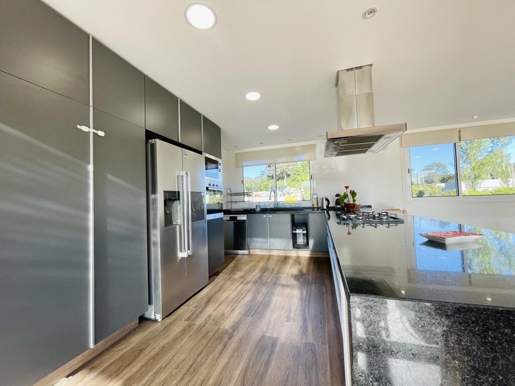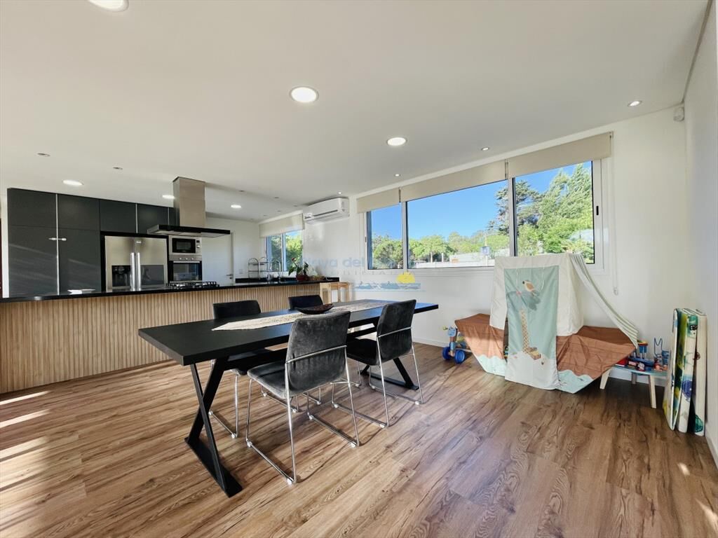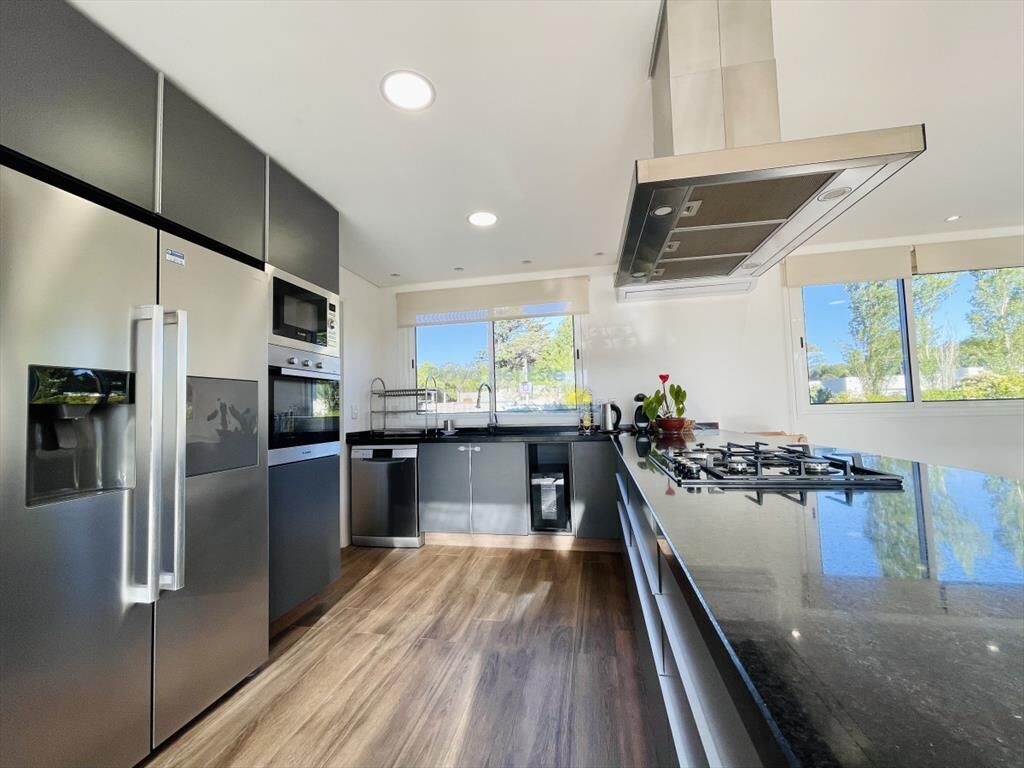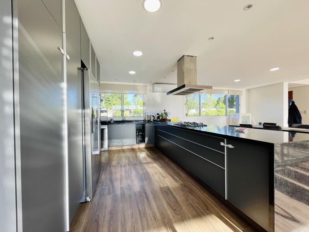 Amplio living comedor con estufa a leña de alto rendimiento y grandes ventanales que permiten el ingreso de luz natural todo el día. Cocina integrada, bien equipada, más área de lavadero y despensa. Cuenta con aire acondicionado en todos los ambientes.