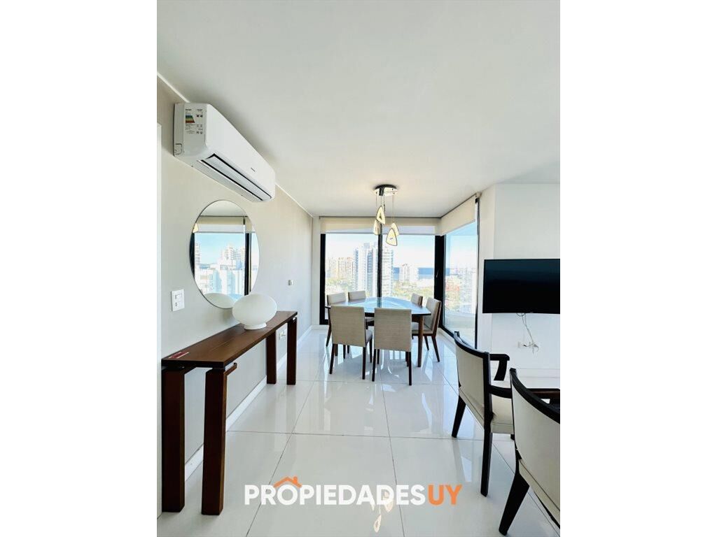 Amplia unidad de tres dormitorios en suite y toilette, principal con terraza y hermosas vistas a la playa brava. Luminoso living comedor con grandes ventanales de piso a techo, y salida a la terraza con hermosas vistas a la mansa y a la brava. Cocina bien equipada con desayunador.