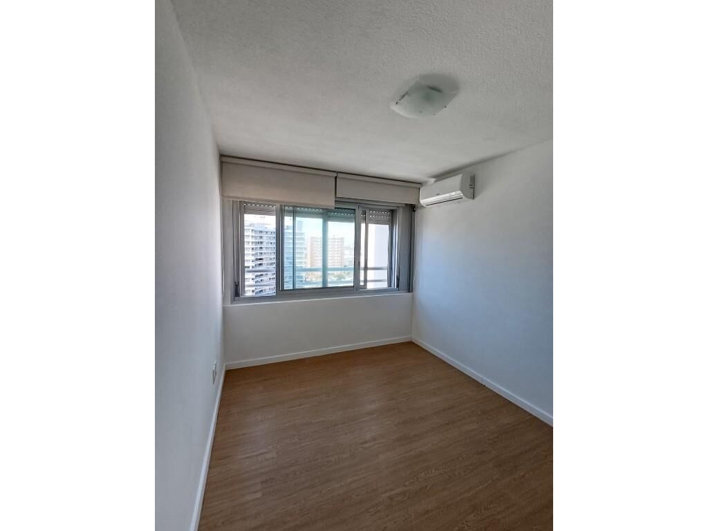 Dormitorio de buen tamaño con placard y aire acondicionado.