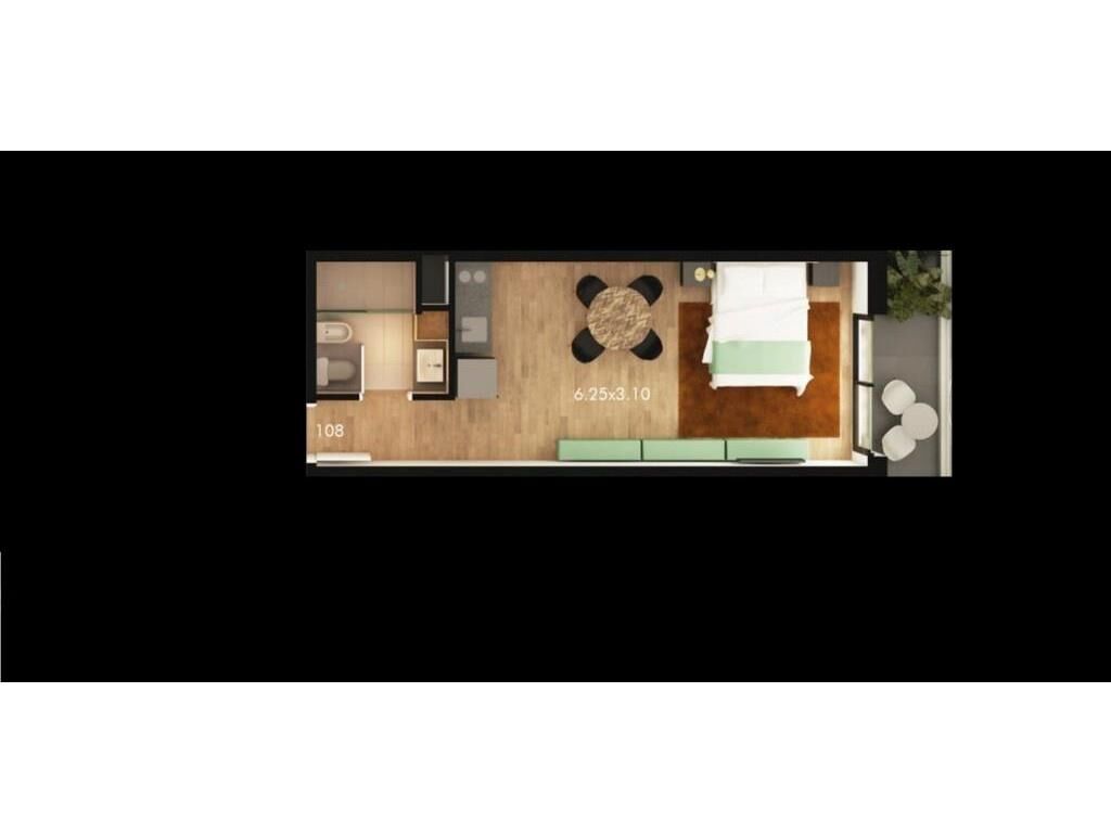Apartamento al frente monoambiente de 40m2. living - comedor, baño completo, cocina integrada y terraza