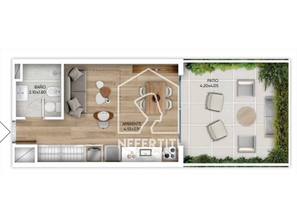 El precio corresponde a la unidad 103, es un Monoambiente con un baño, y kitchenette integrada al estar con salida a patio de 17mt2, en ubicación privilegiada.