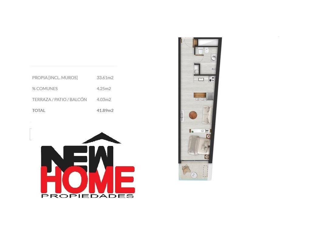 Apartamentos monoambiente disponibles a partir de USD 118500. Cocina integrada, living-comedor y còmoda terraza.